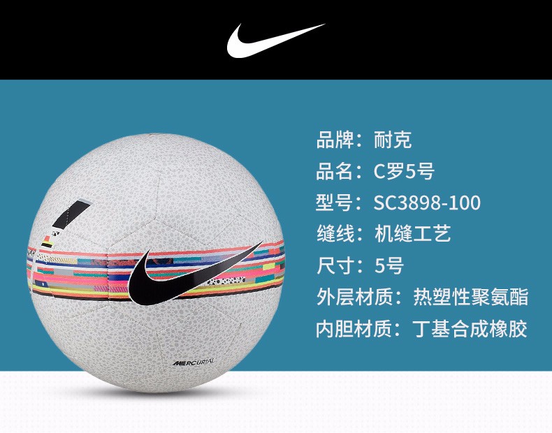 - 商品名称:耐克NIKE足球5号训练足球儿童足球 C罗雪豹 5号球SC3898-100 气针 气筒 网兜