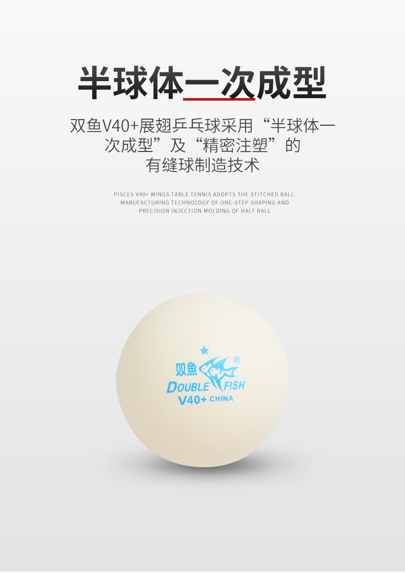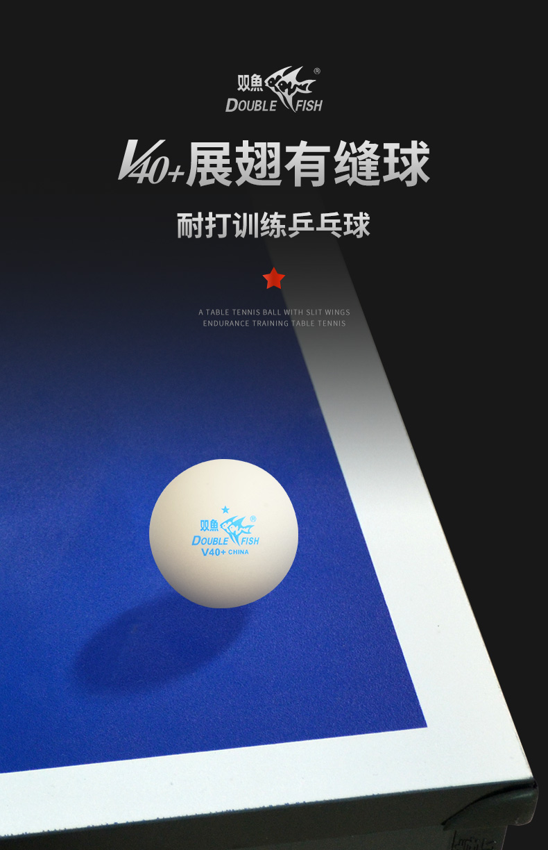 双鱼(DOUBLE FISH)一星乒乓球比赛训练用球 展翅V40+ 白色 60只(大桶装)