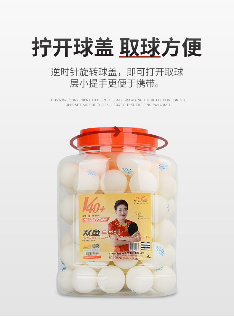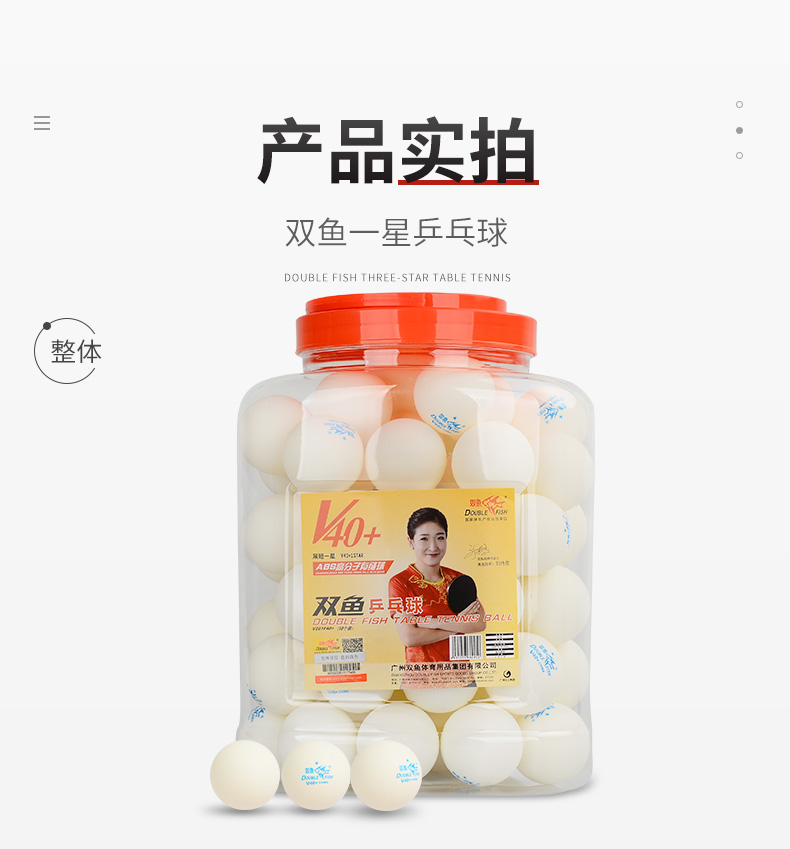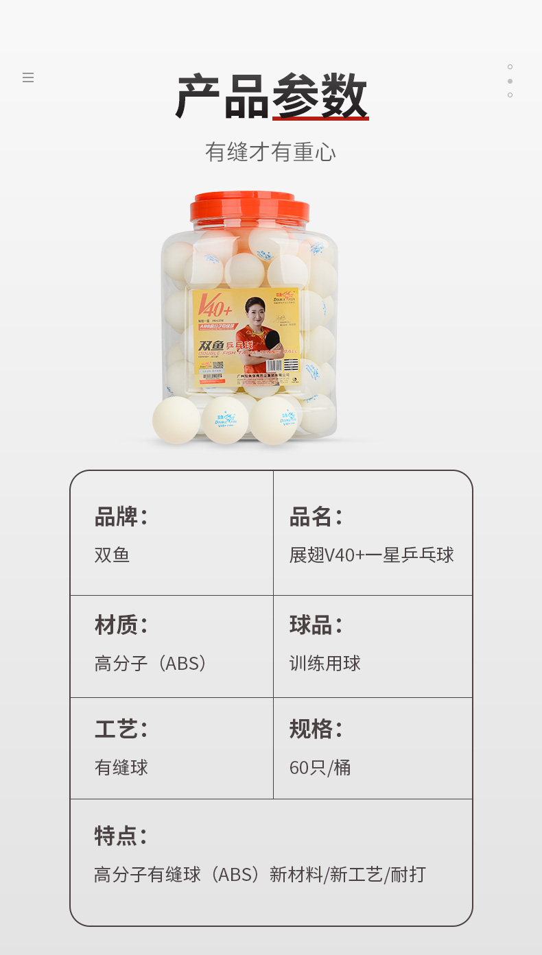 商品名称:双鱼(DOUBLE FISH)一星乒乓球比赛训练用球 展翅V40+ 白色 60只(大桶装)