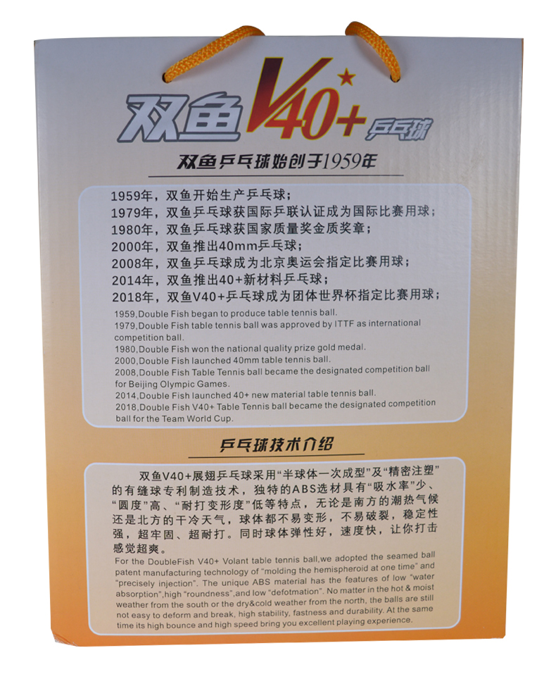 - 商品名称:双鱼(DOUBLE FISH) 双鱼 V40+新材料一星乒乓球 100个装 有缝球 V40+一星球(黄色100个装)