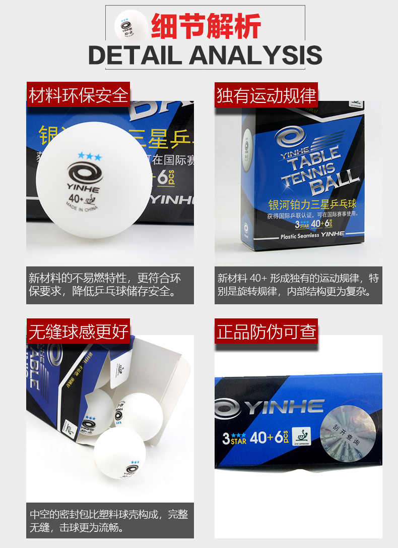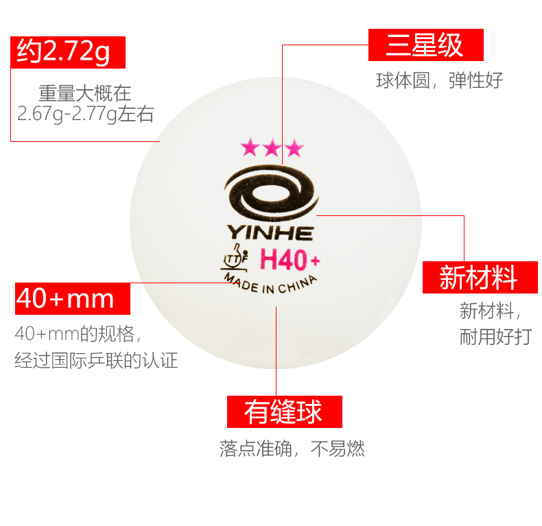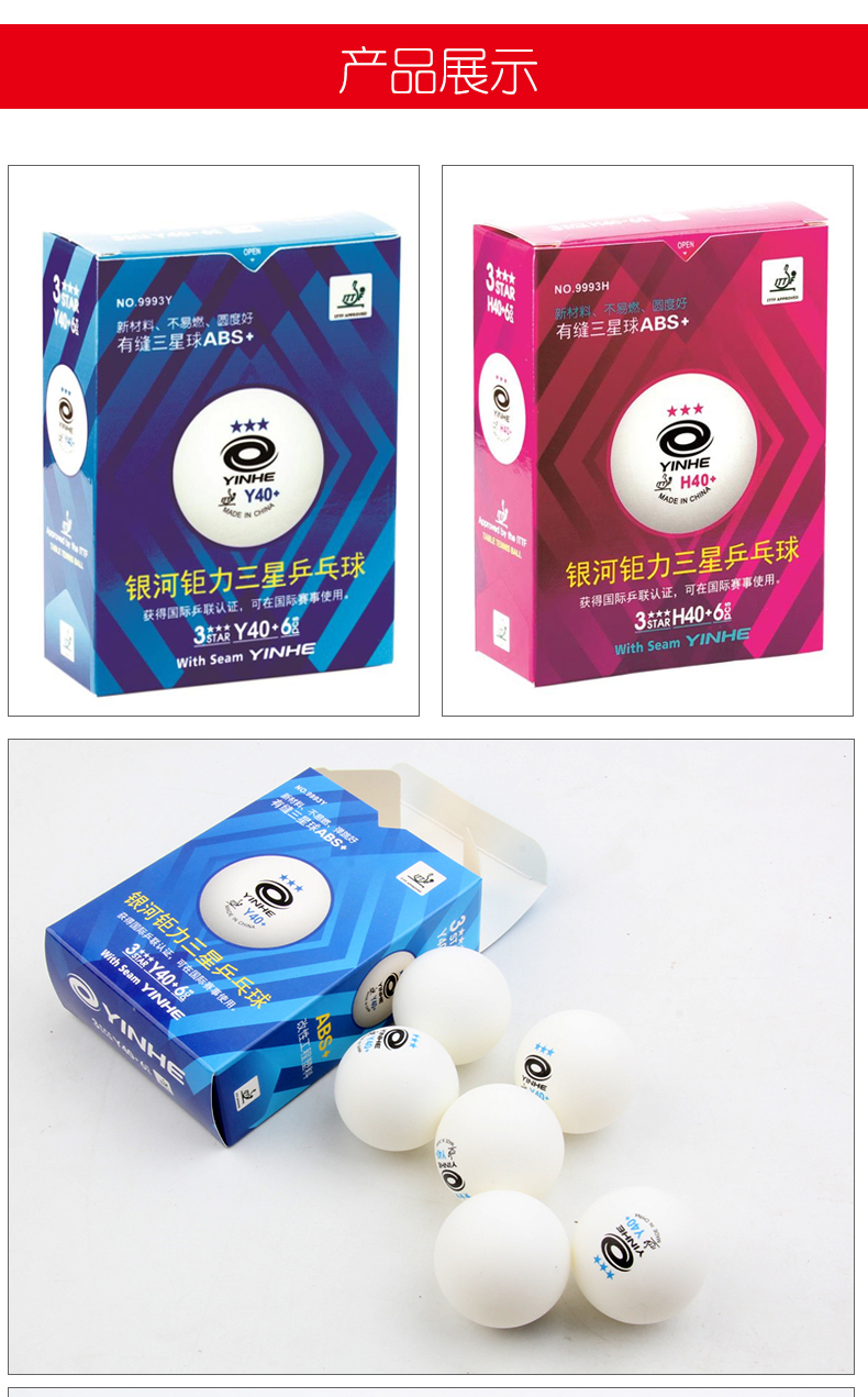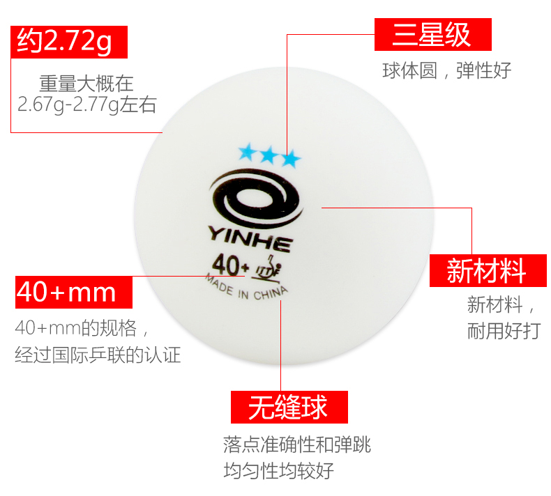 - 商品名称:正品银河级铂力蓝三星红三星乒乓球无缝新材料铂力40+3星乒乓球比赛用球钜力三星乒乓球一星二星乒乓球 钜力红三星H40+ 6个装【有缝】