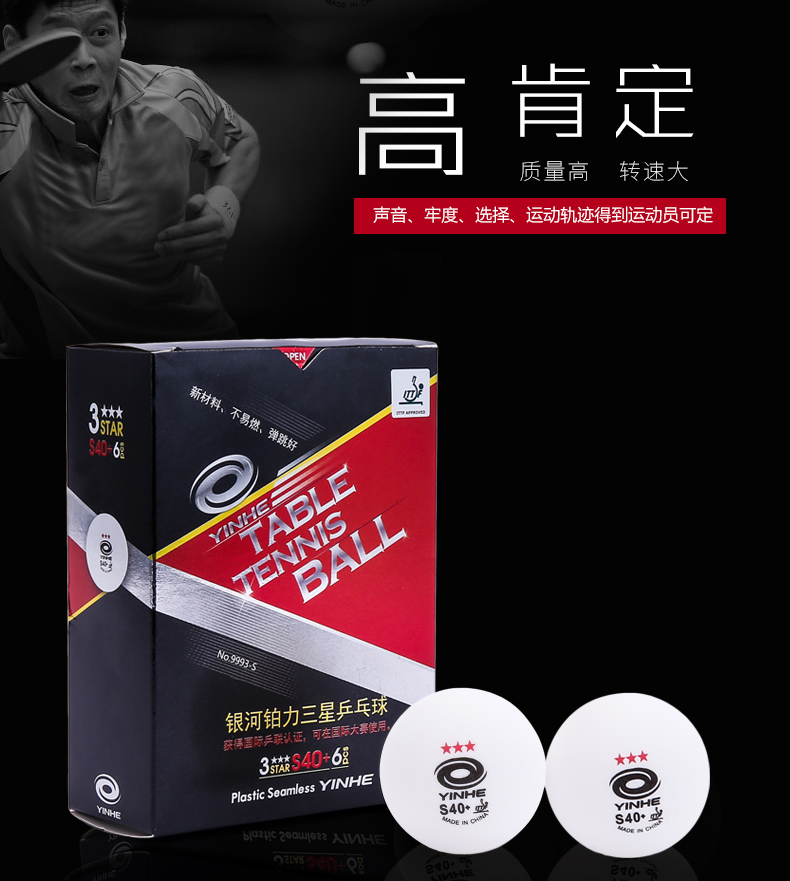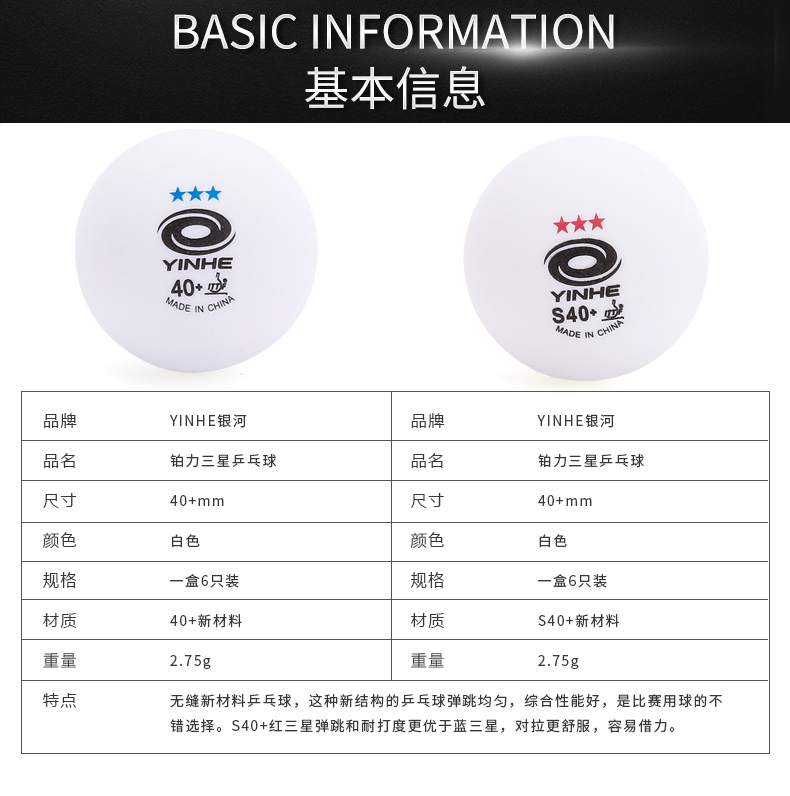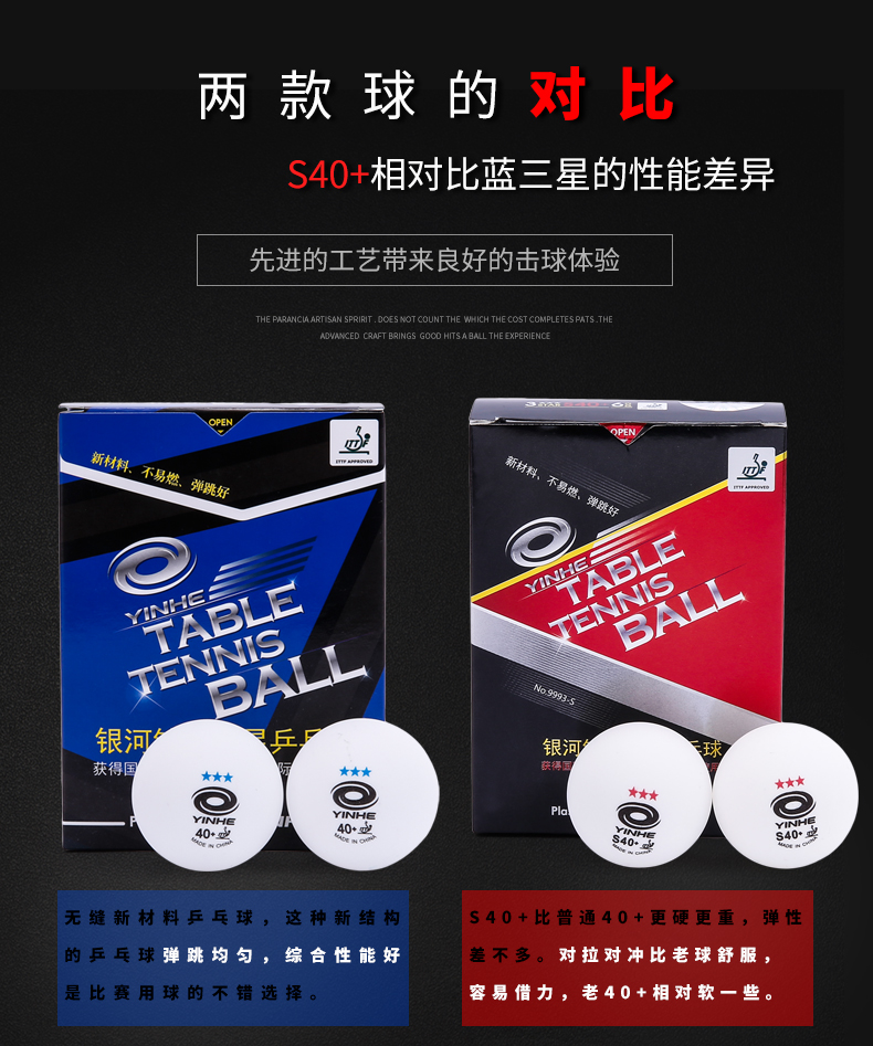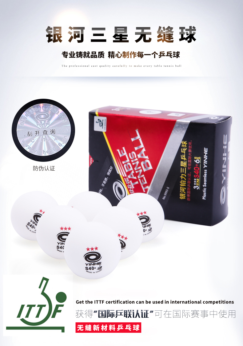 - 商品名称:银河三星球新材料40+乒乓球铂力塑料训练比赛用3星无缝乒乓球蓝色三星红色三星球 40+绿色一星有缝球100只装