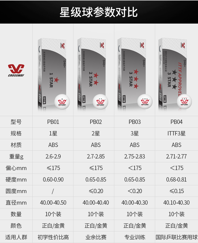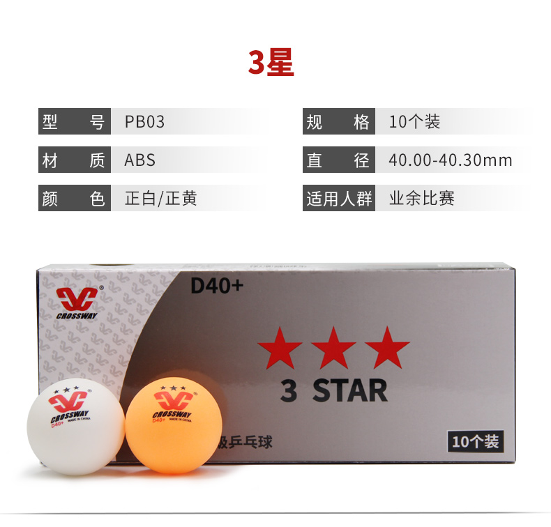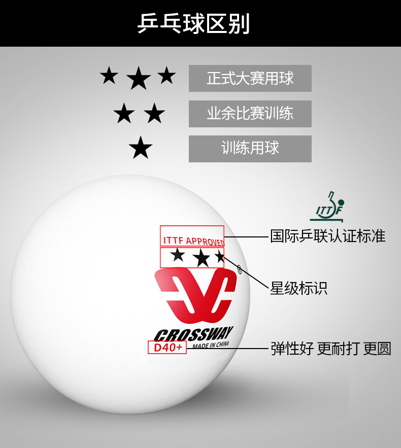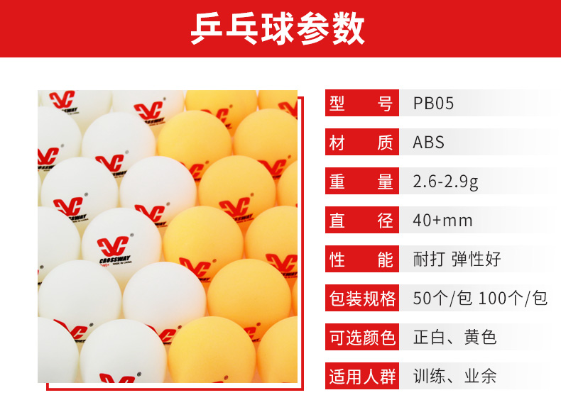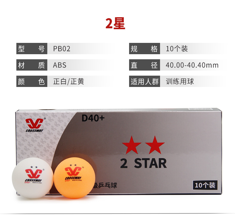- 商品名称:克洛斯威乒乓球三星级比赛专用球兵乓球训练球耐打40+新材料有缝球 训练球(D40+)-白色-100个/袋