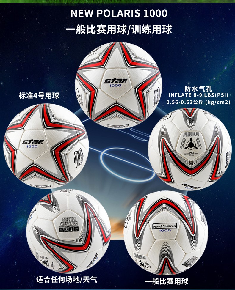 - 商品名称:世达(star)足球1000手缝防水训练比赛专用球 标准5号成人4号学生 青少年五号SB375 SB375(手缝5号足球)世达1000