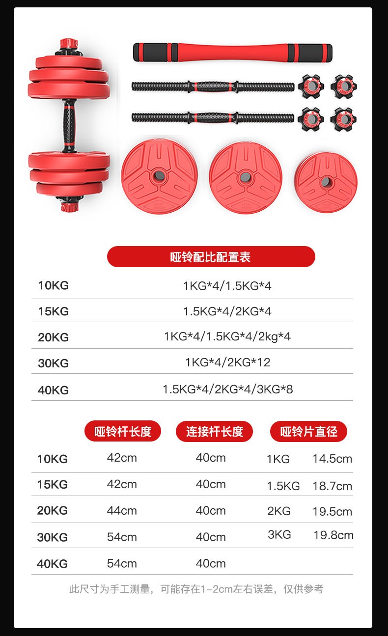 商品名称:哑铃男士健身器材家用20/30公斤特价一对可拆卸杠铃亚玲套装练臂肌 【木星红】30kg一副(15kg*2只)