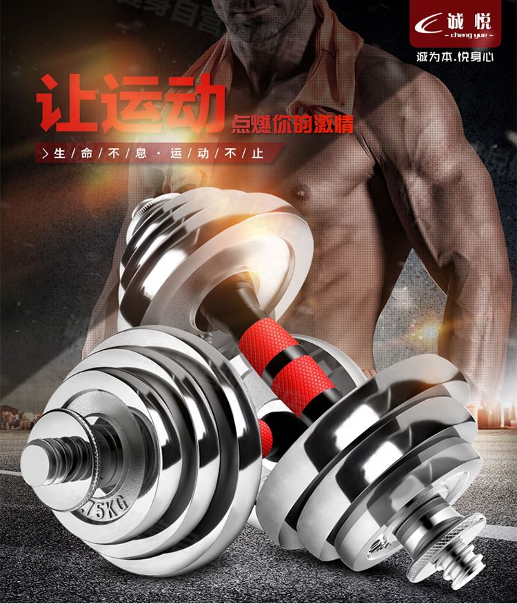 - 商品名称:诚悦电镀哑铃杠铃20kg(10公斤*2)礼盒男女士运动健身训练器材家用组合升级套装赠护手护腕加长连接器CY-025