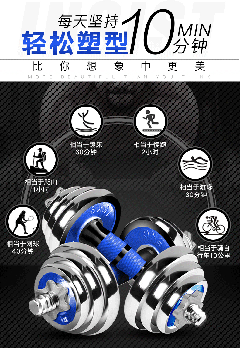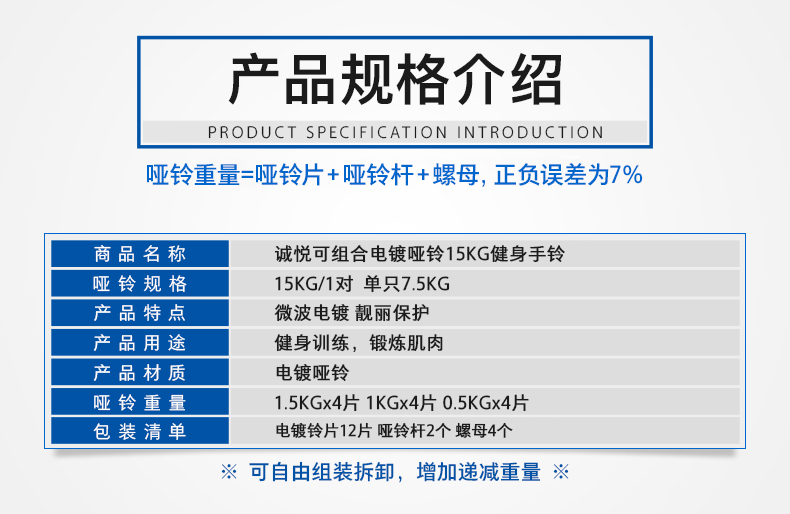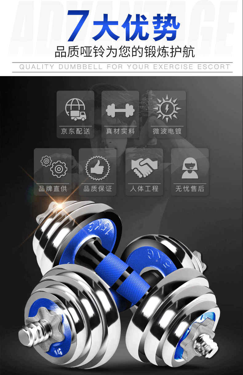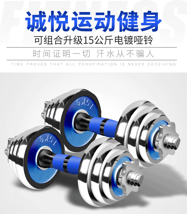 - 商品名称:诚悦电镀哑铃杠铃15kg(7.5公斤*2)男女士体育运动健身器材家用组合套装CY-066