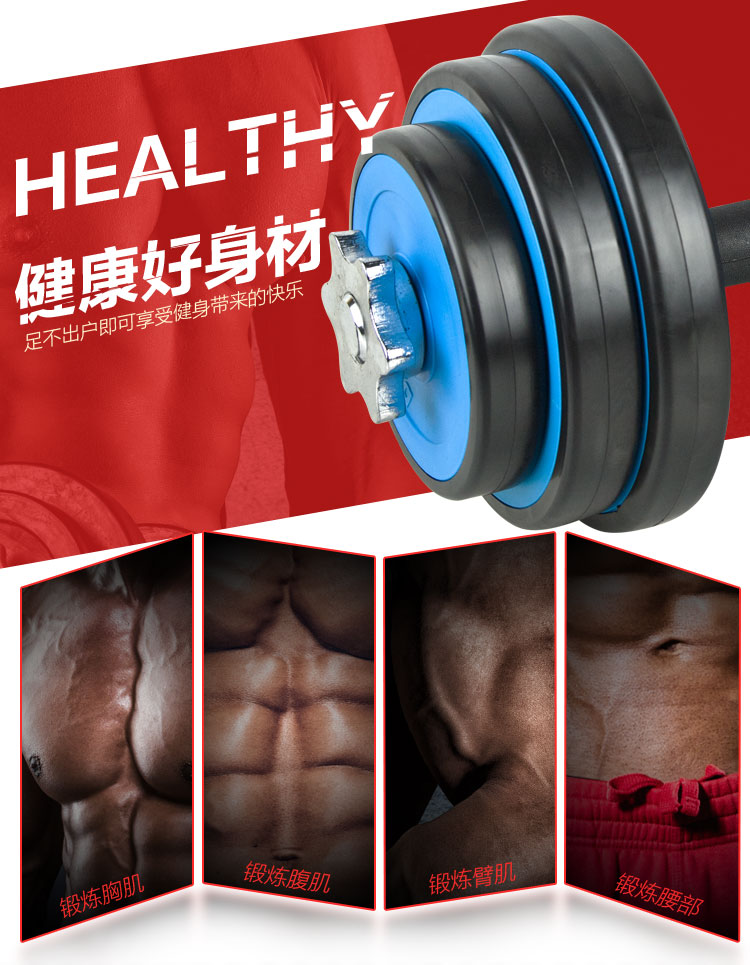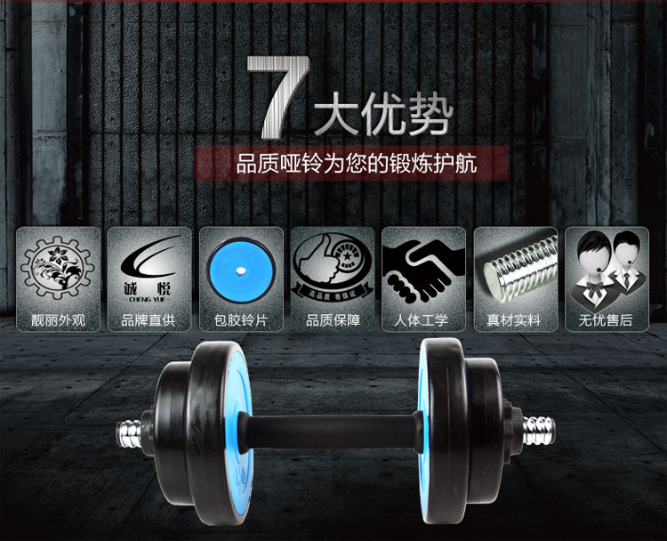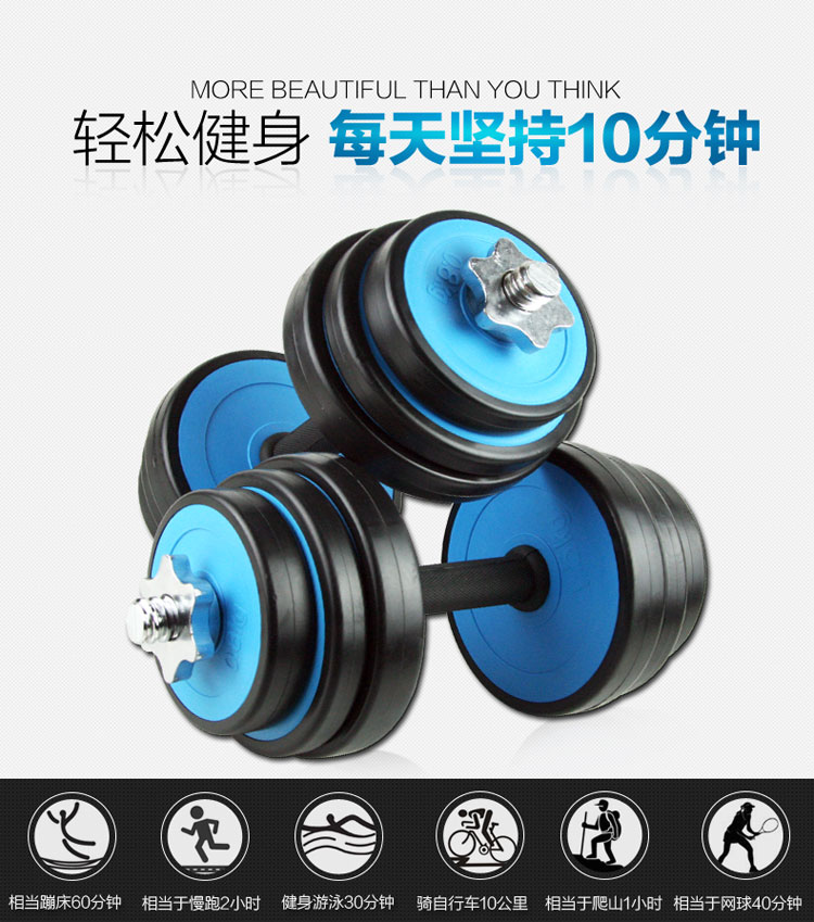 商品名称:诚悦哑铃杠铃10公斤kg蓝色可拆卸天然彩胶男士女士运动健身器材CY-121