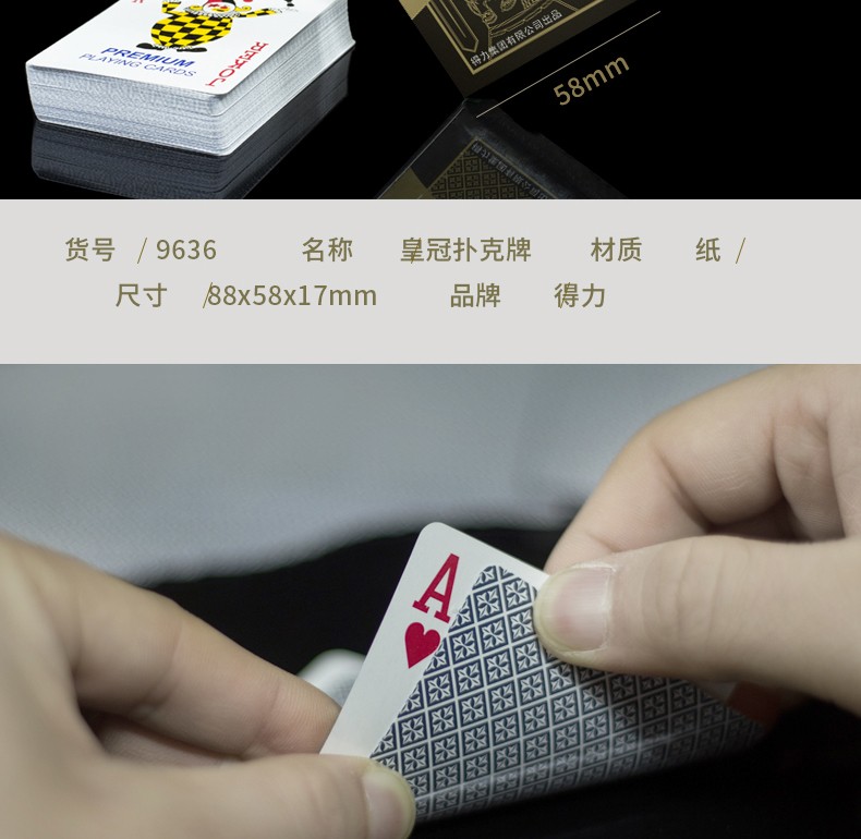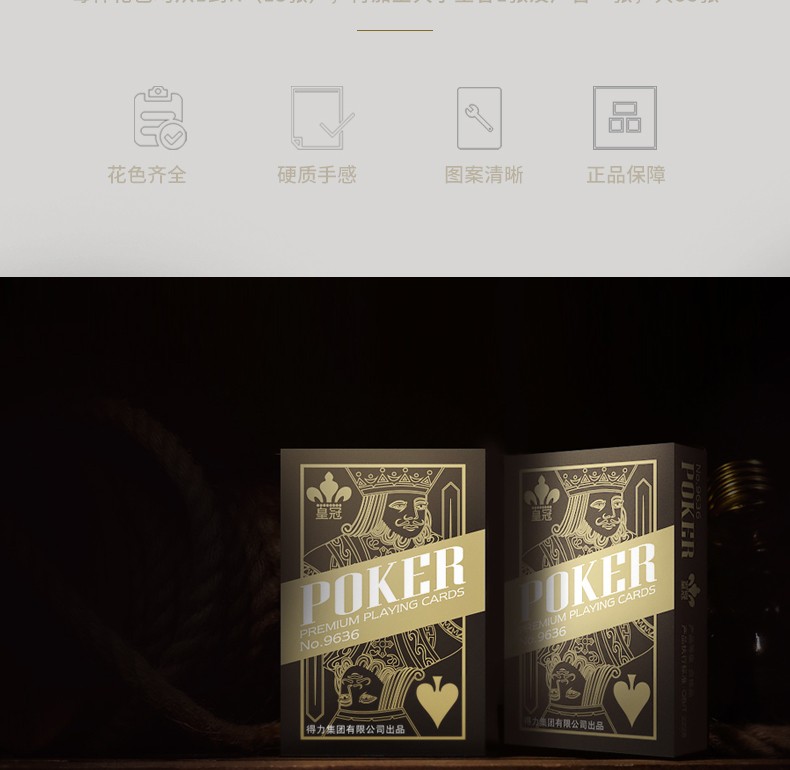 - 商品名称:得力扑克皇冠扑克牌创意加厚经济耐用桥牌聚会游戏牌扑克牌家用 4副(金色)