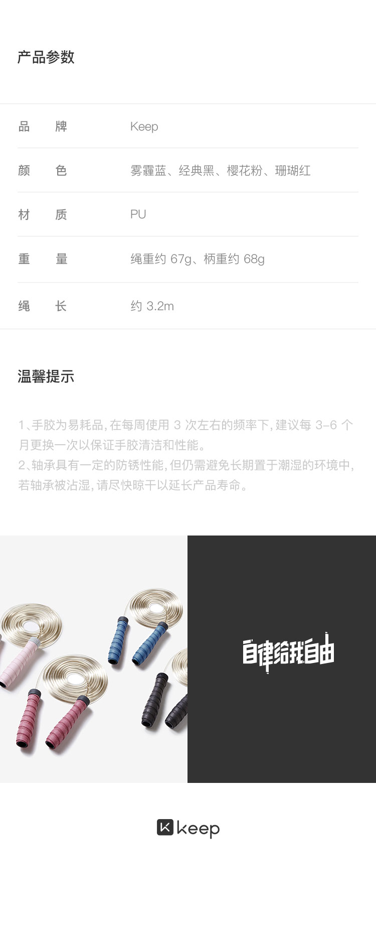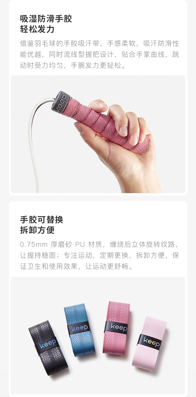 商品名称:Keep 跳绳手胶版 高速轴承 吸汗防滑 经典黑