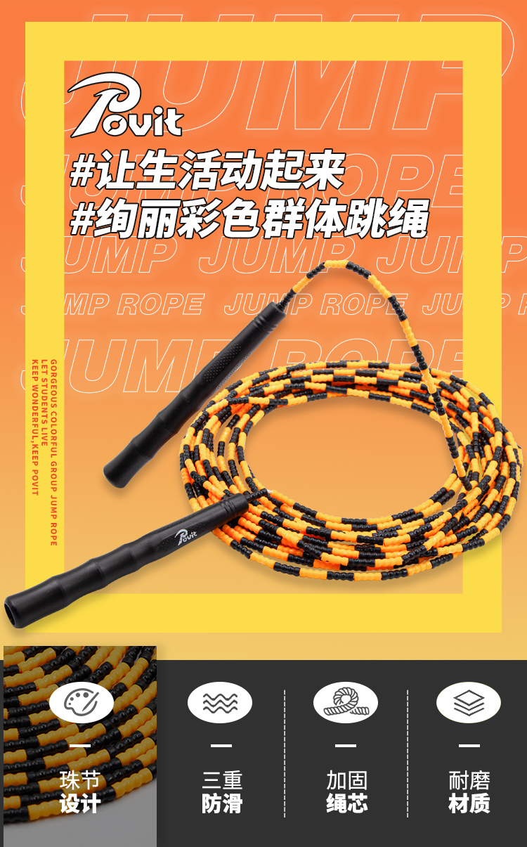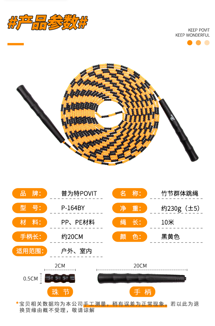 商品名称:普为特 竹节10米长绳成人中小学生多人团体跳绳运动健身集体训练团建器材 黑黄色 P-164BY