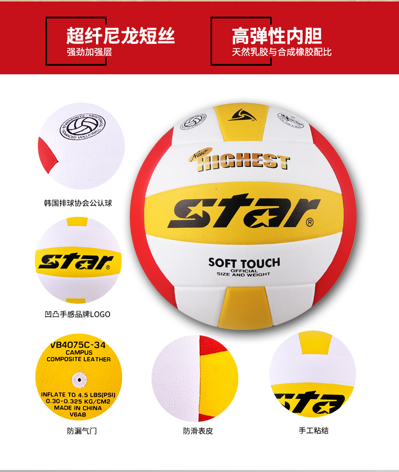 - 商品名称:世达 star VB5055C-34中小学生专用球排球男女比赛训练初中生中考软硬式排球