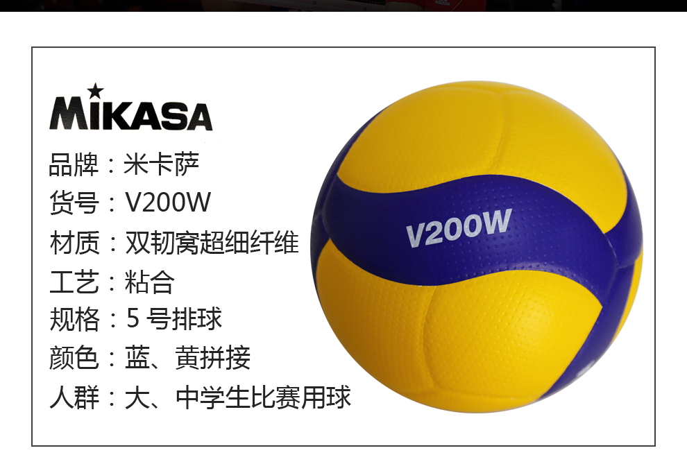- 商品名称:mikasa 排球男女正品 训练比赛排球女排2020奥运会比赛用球 V200W