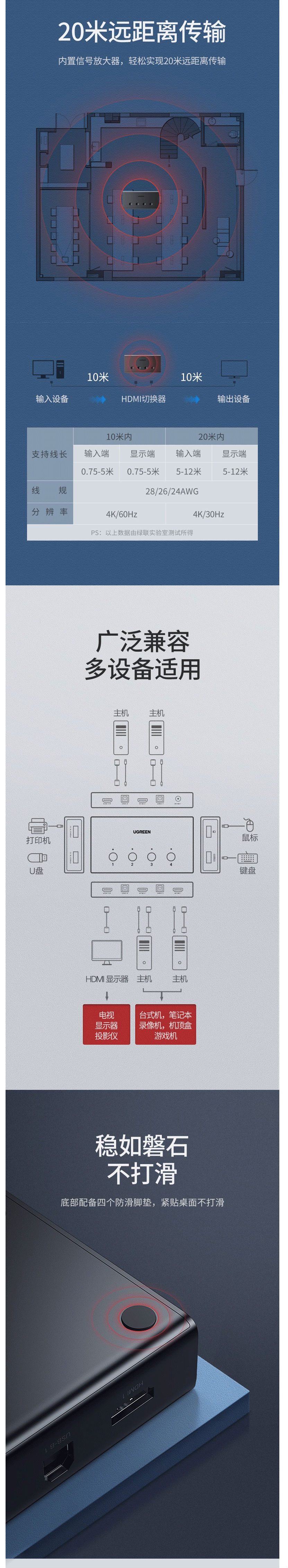 - 商品名称:绿联 KVM切换器HDMI2.0切屏器4进1出4K高清 USB打印机共享器 四台电脑共享一套键鼠 KVM切换器4进1出【4K/60Hz】