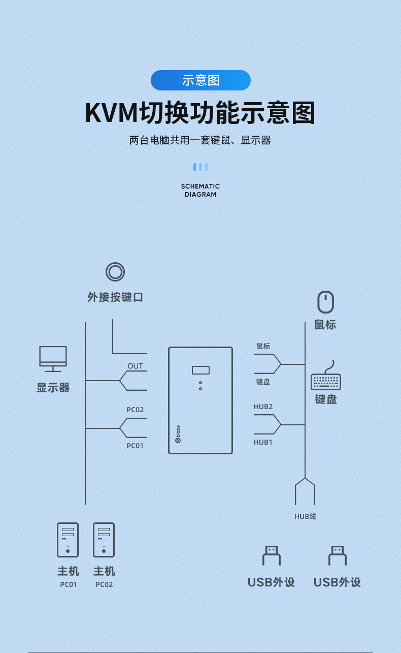 - 商品名称:毕亚兹 KVM切换器 HDMI切屏器2进1出4K高清 USB打印机共享器 两台电脑共享台显示器自动切换 kvm03