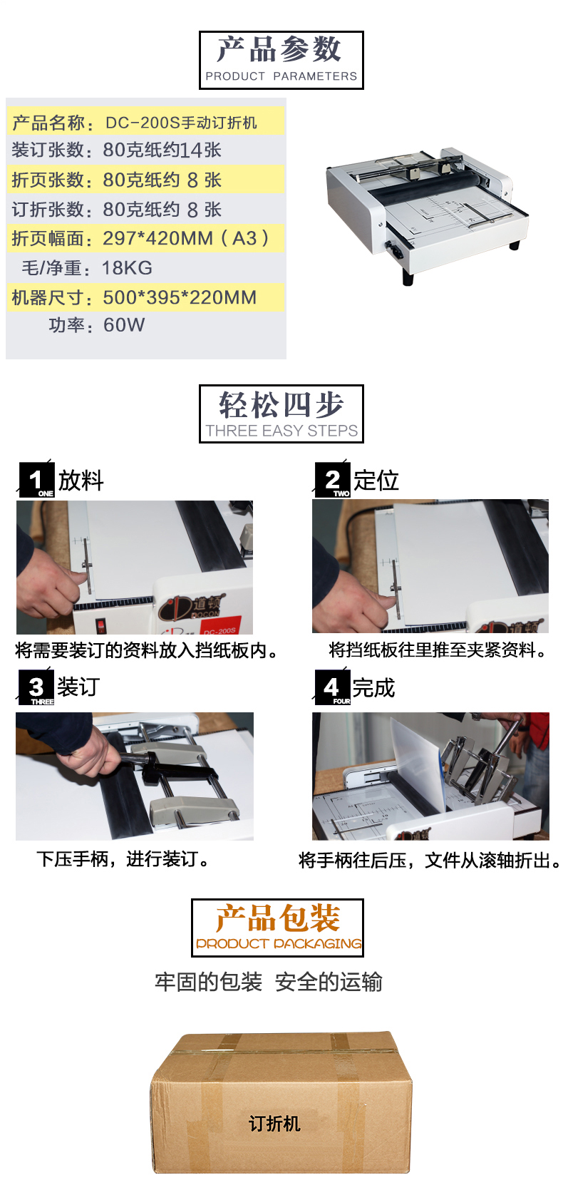 - 商品名称:道顿(DOCON)DC-200S 手动订折机 平订骑马钉 订折一体机 A3幅面 折页机