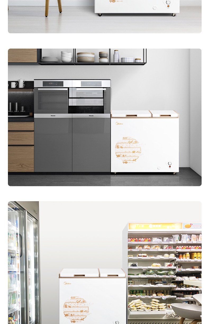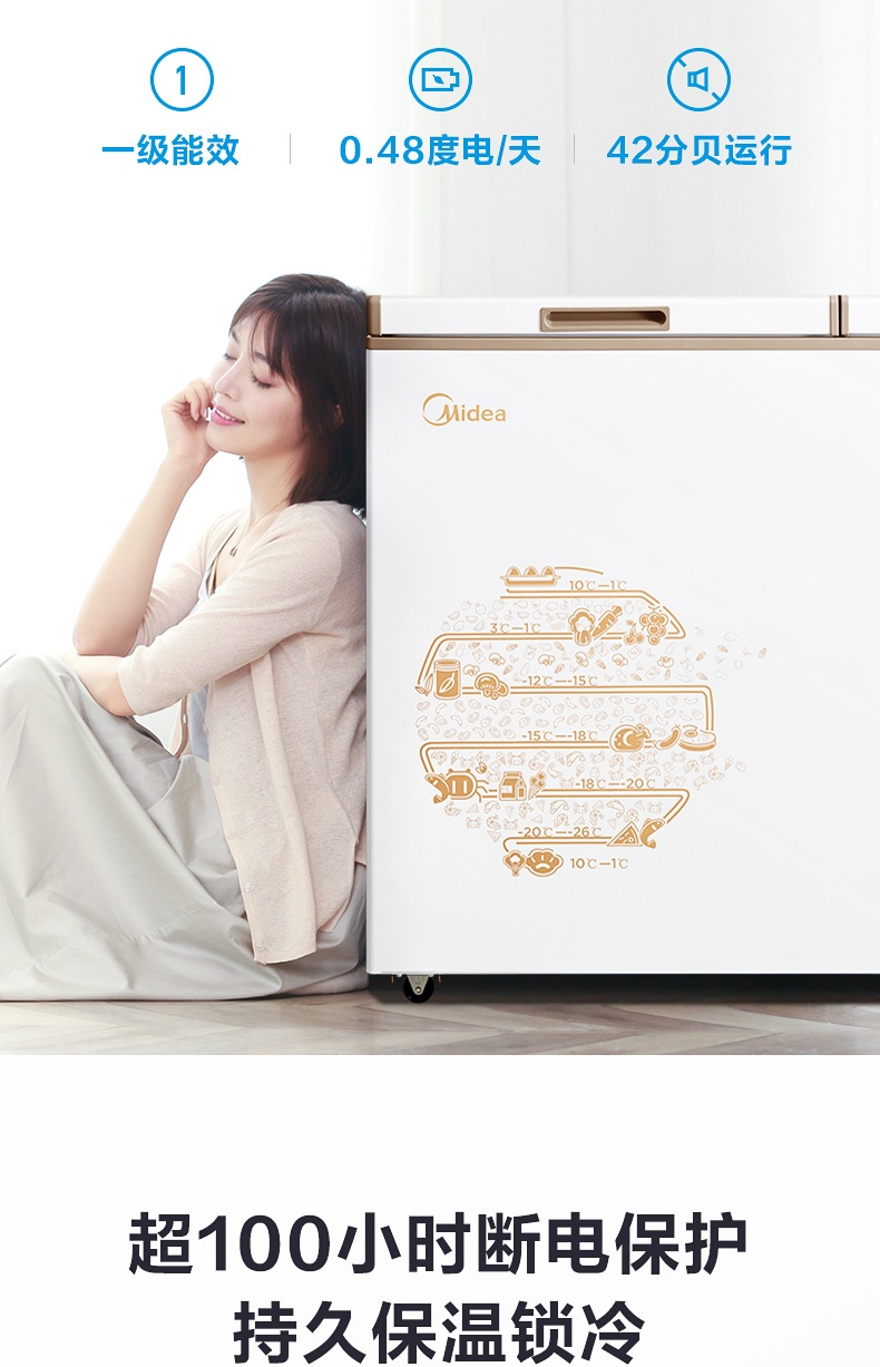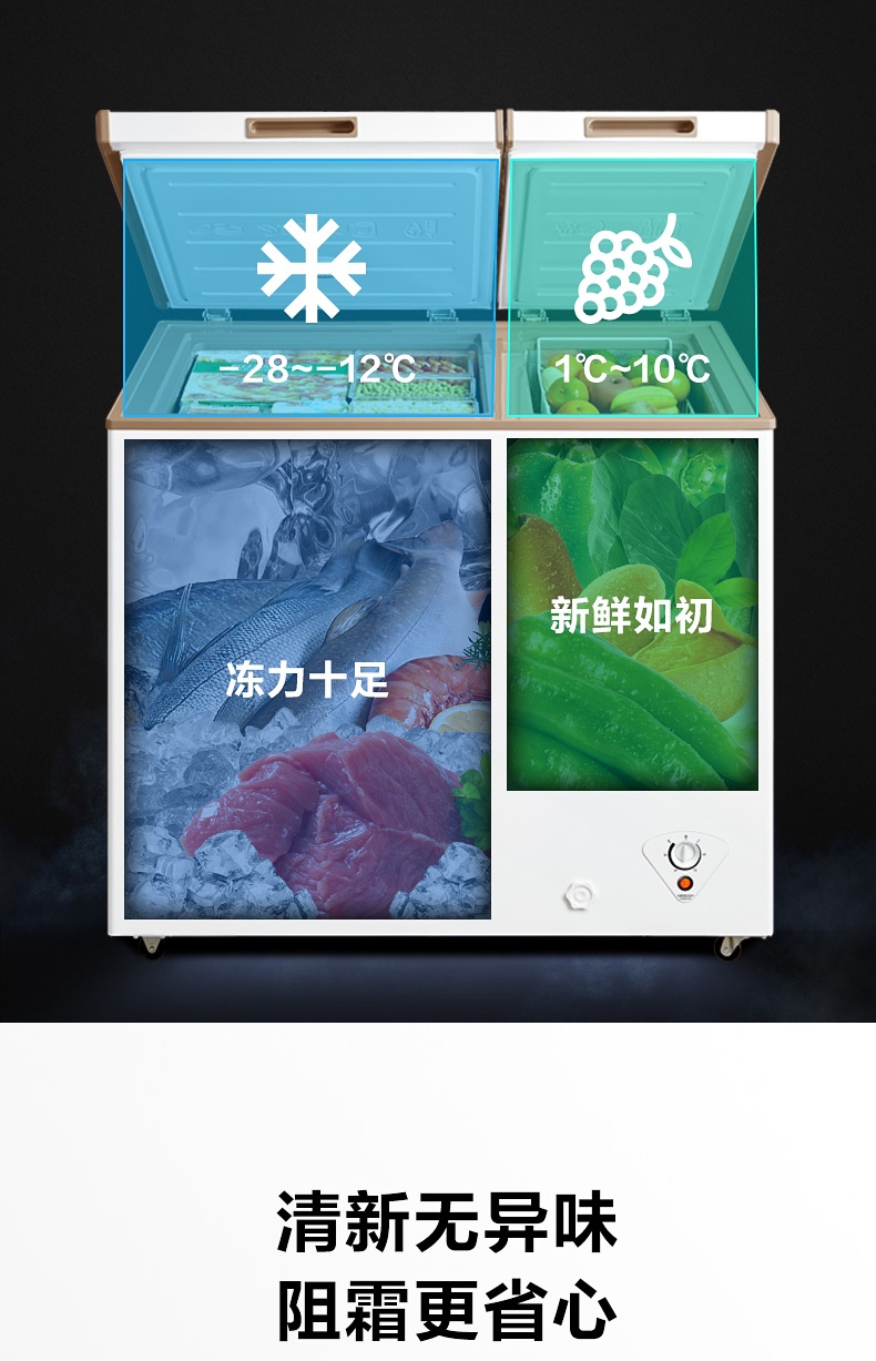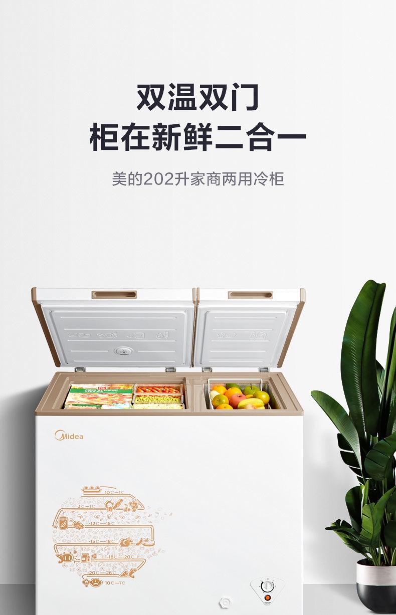 - 商品名称:美的(Midea)202升 家用冰柜 双顶开双温柜 一级能效 省电静音卧式冰箱BCD-202DKM(E)