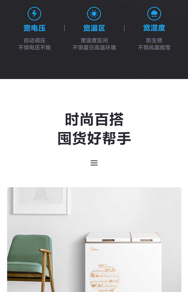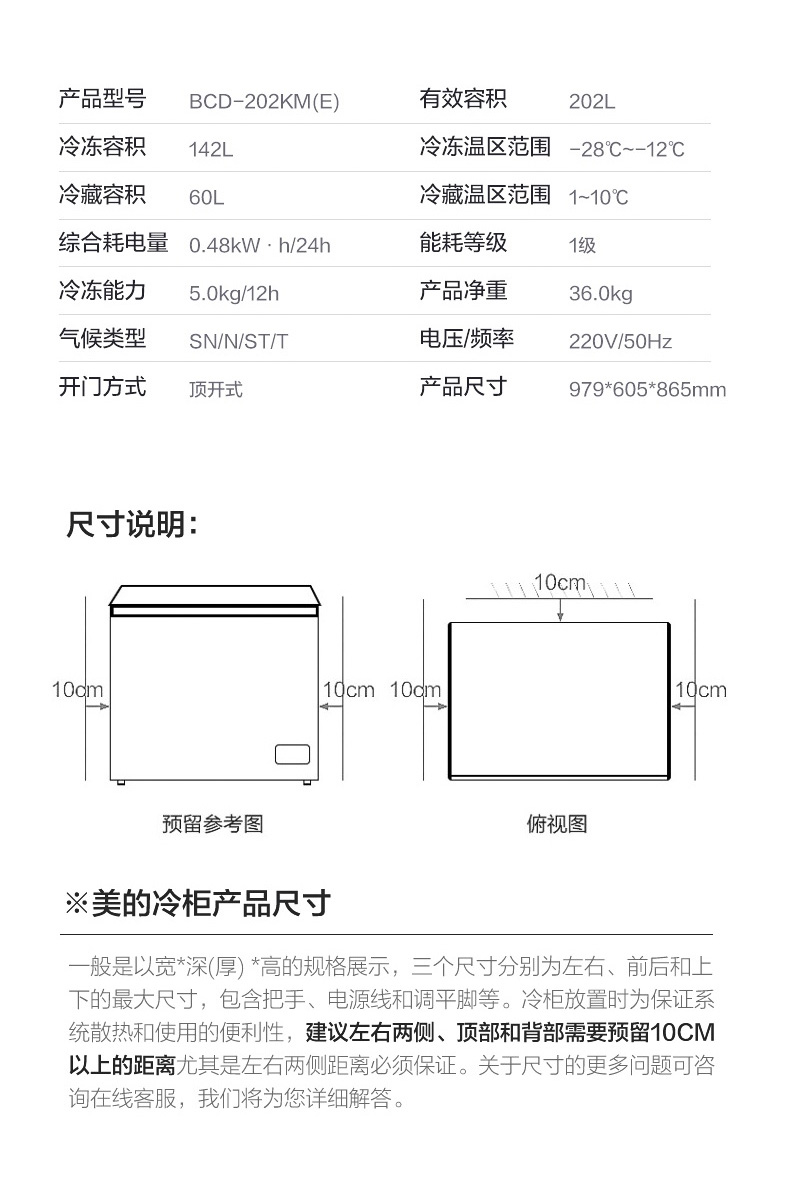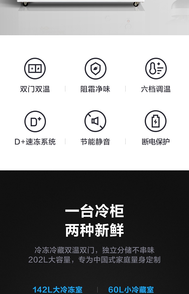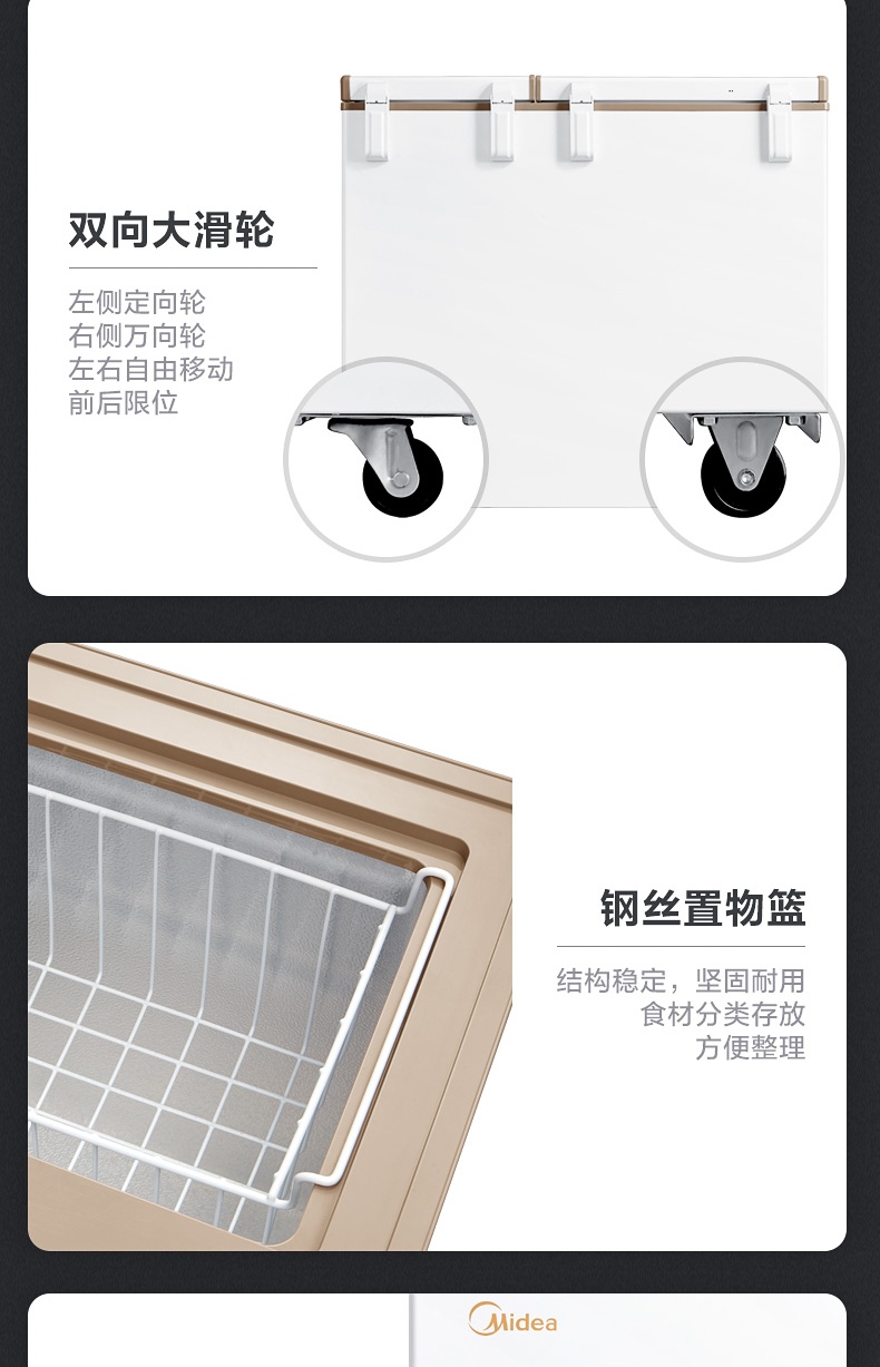 - 商品名称:美的(Midea)202升 家用冰柜 双顶开双温柜 一级能效 省电静音卧式冰箱BCD-202DKM(E)