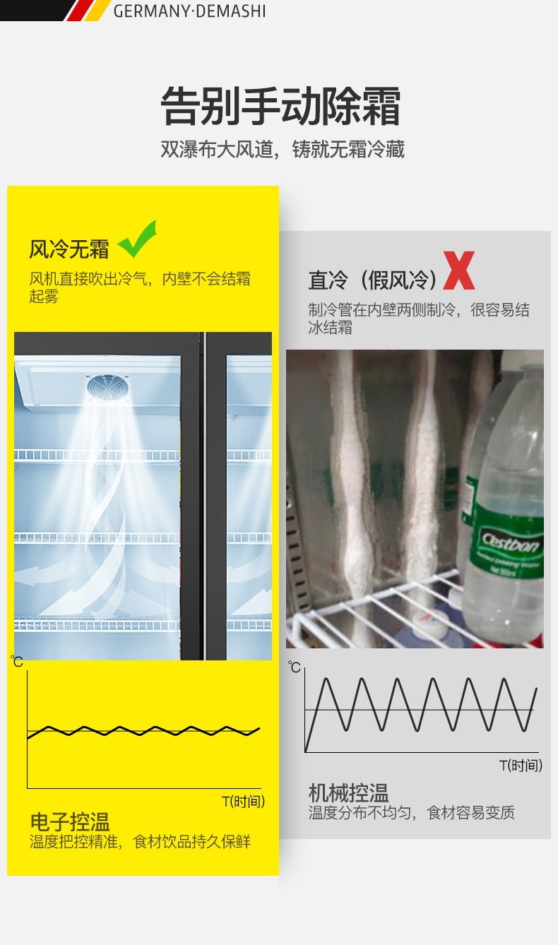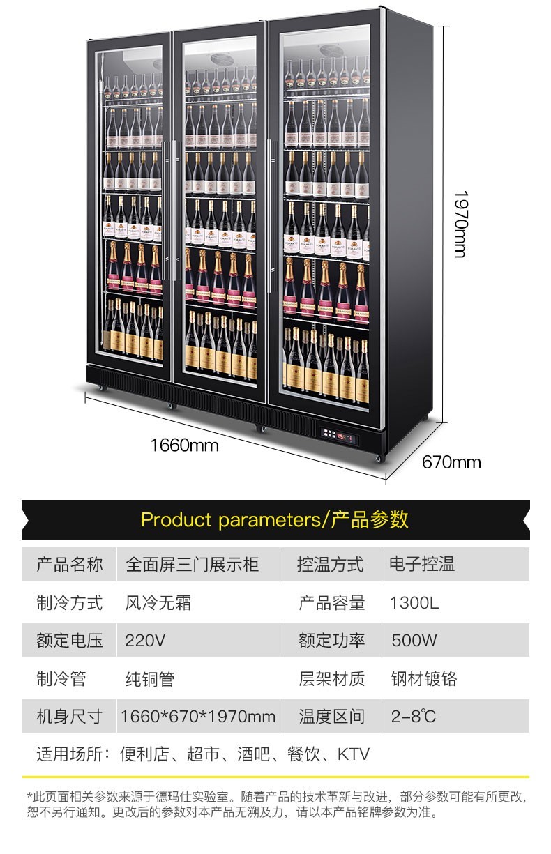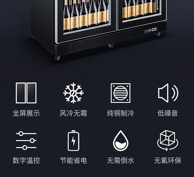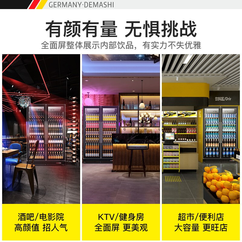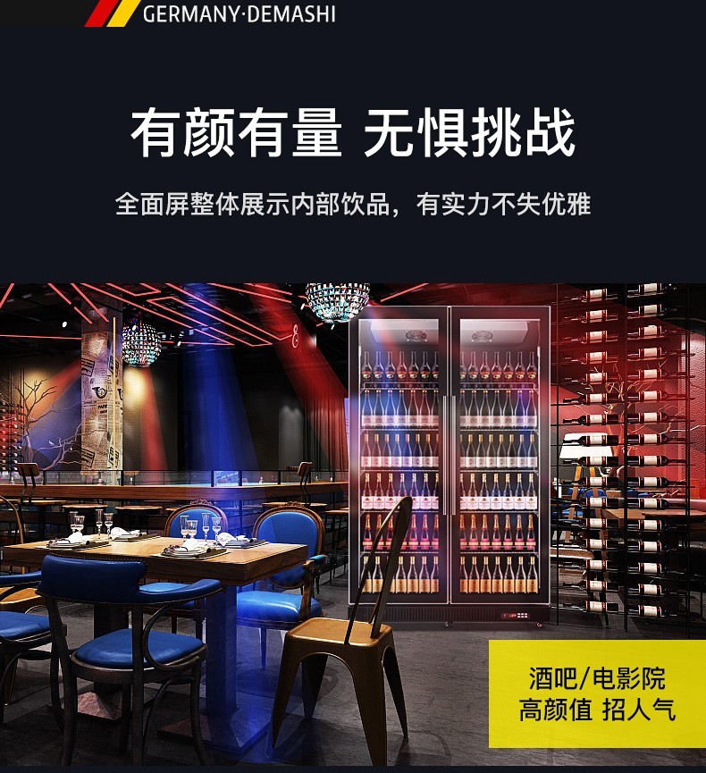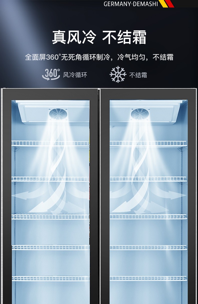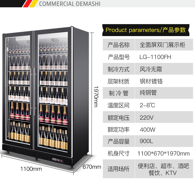 德玛仕(DEMASHI)双门展示柜冷藏柜酒吧超市冰箱商用保鲜柜啤酒蔬菜饮料展示柜厨房立式冰柜风直冷 双门风冷无霜LG-1100FH(900L大容量)