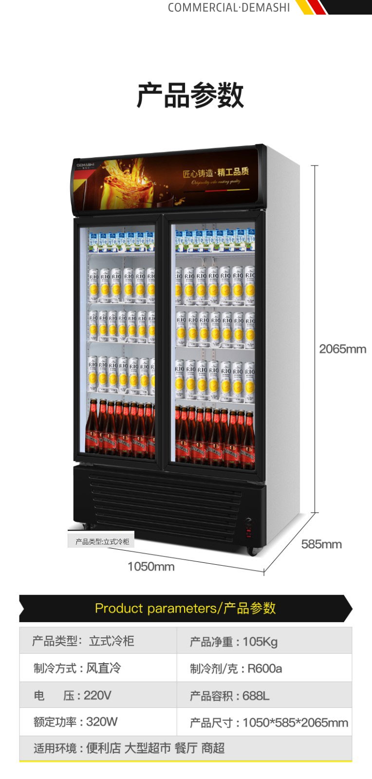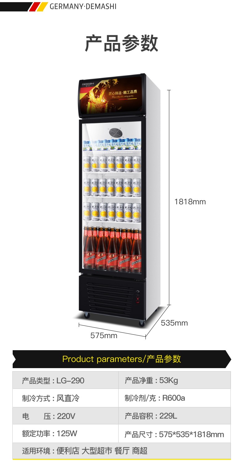 商品名称:德玛仕(DEMASHI)双门展示柜冷藏柜酒吧超市冰箱商用保鲜柜啤酒蔬菜饮料展示柜厨房立式冰柜风直冷 双门风冷无霜LG-1100FH(900L大容量)