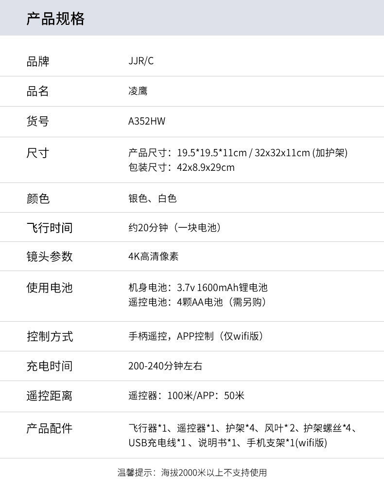 商品名称:JJR/C 大型耐摔高清4K无人机航拍器 白色双电续航40分钟遥控飞机 男孩玩具航模四轴飞行器