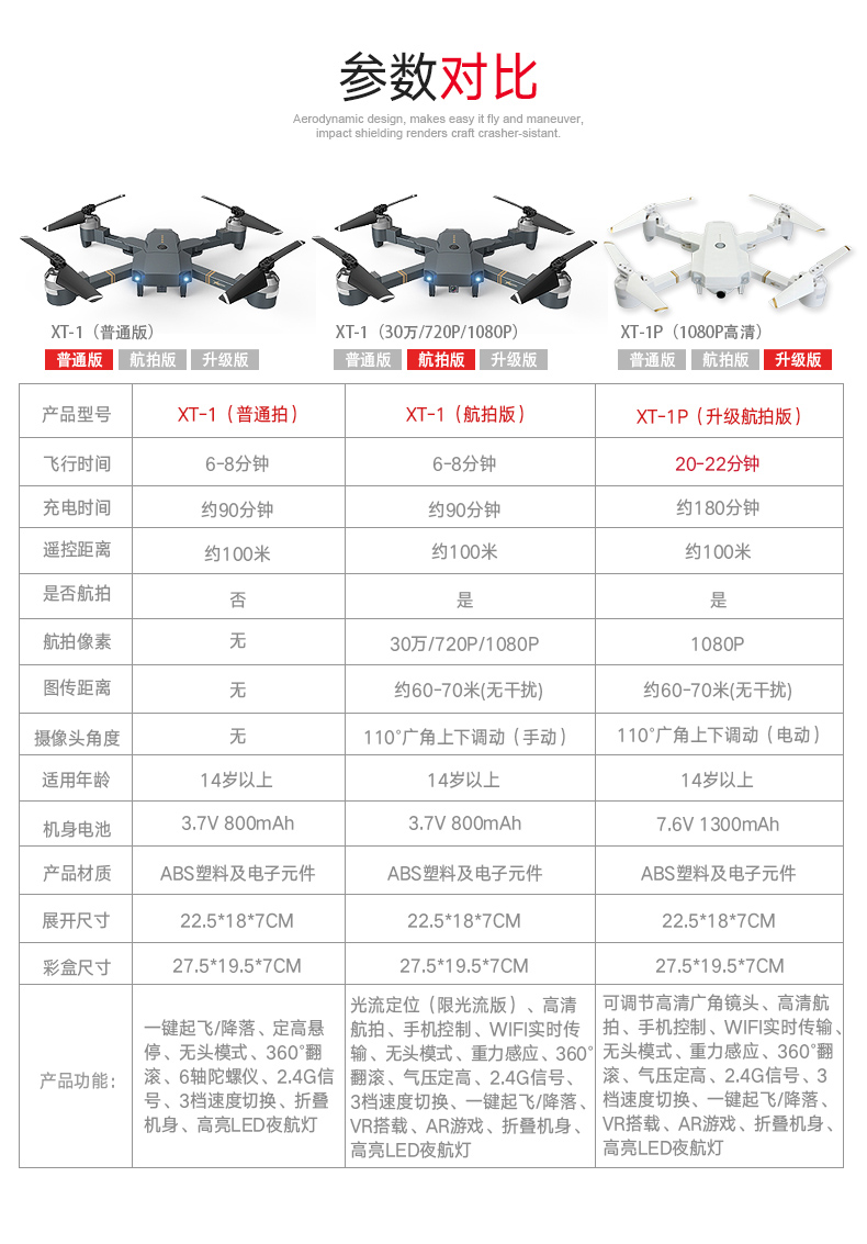 商品名称:雅得XT-1航拍无人机 玩具遥控飞机直升机 高清折叠四轴飞行器航模男孩 XT-1【720P高清航拍】