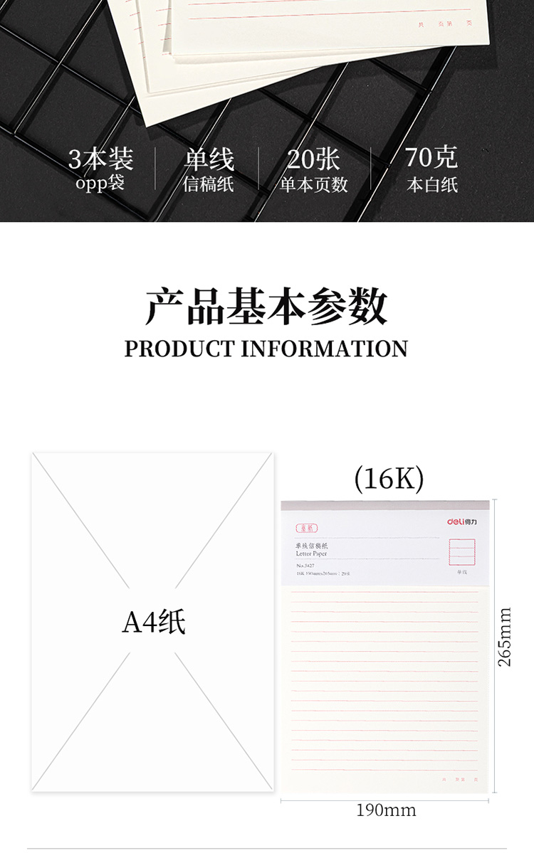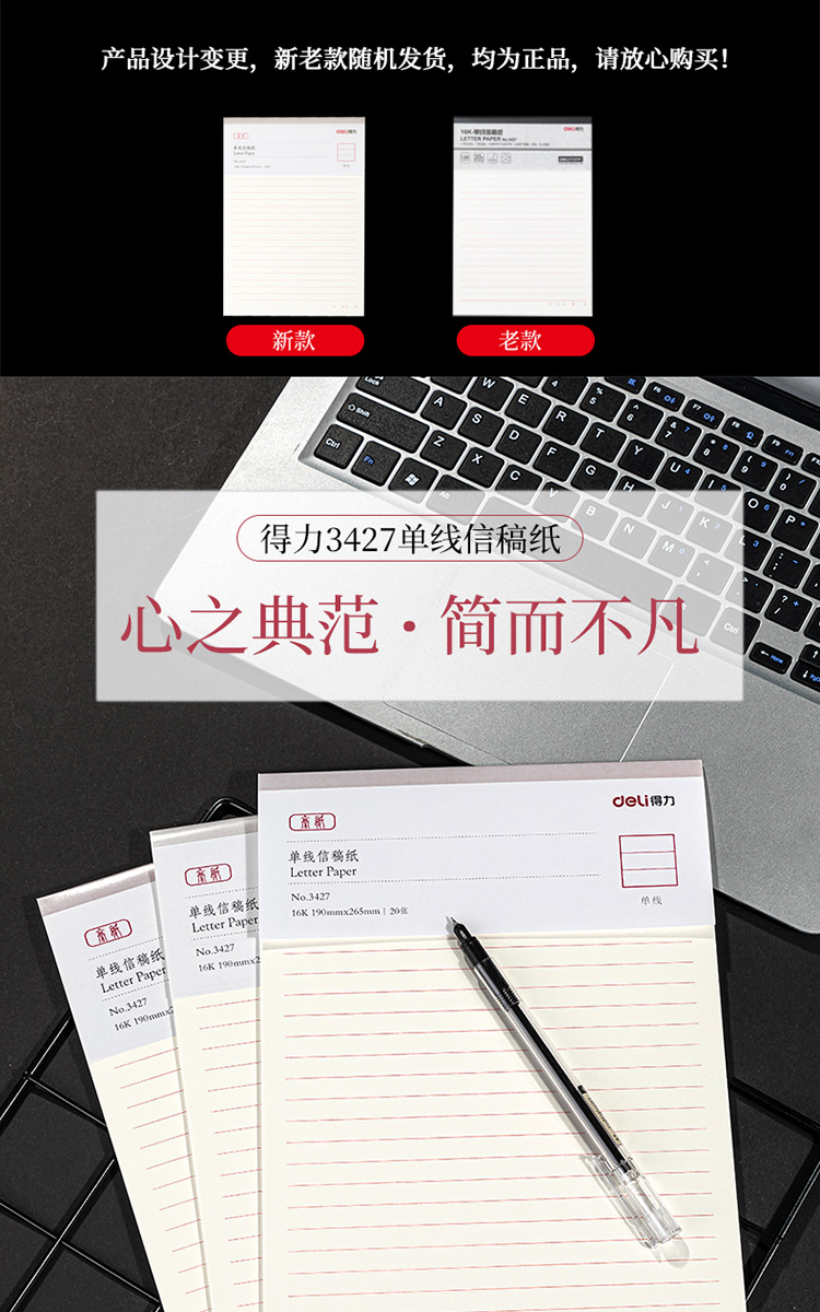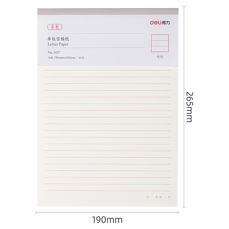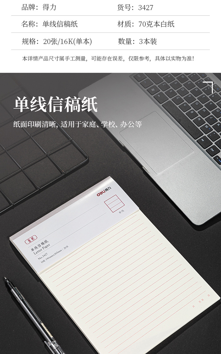 - 商品名称:得力(deli)3本16K/20张单线信稿纸笔记本子草稿纸作业本3427