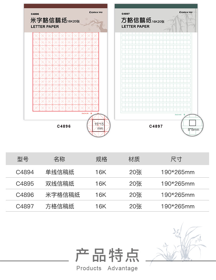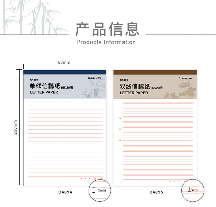 - 商品名称:齐心(Comix)双线信稿纸草稿纸作业本16K/20张 3本装 C4895-3