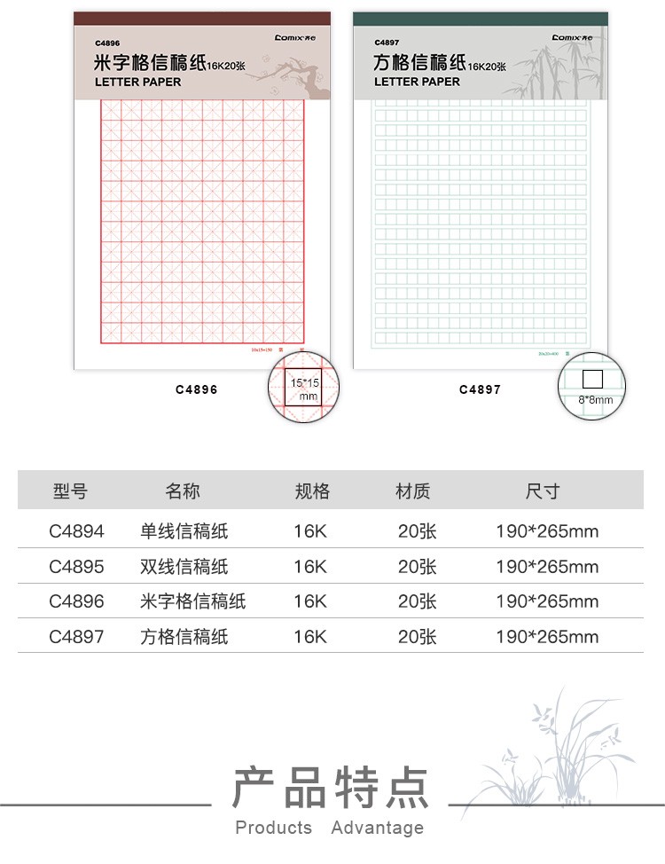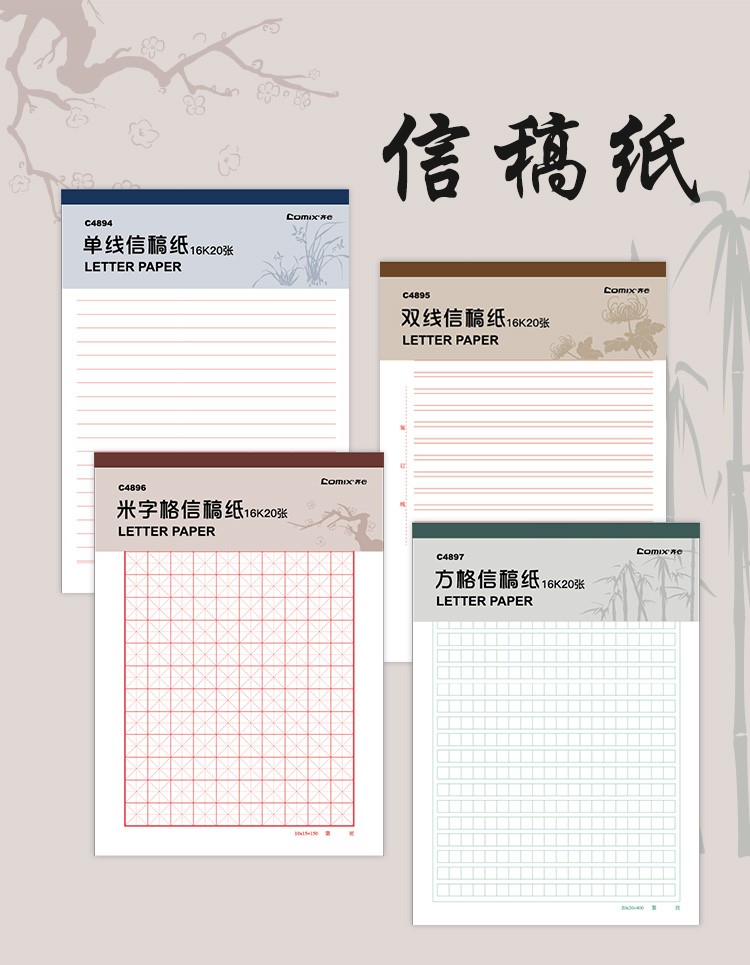 - 商品名称:齐心(COMIX)信稿纸草稿纸作业本 学生练字本作文本 16K/20页 单线-3本装 C4894