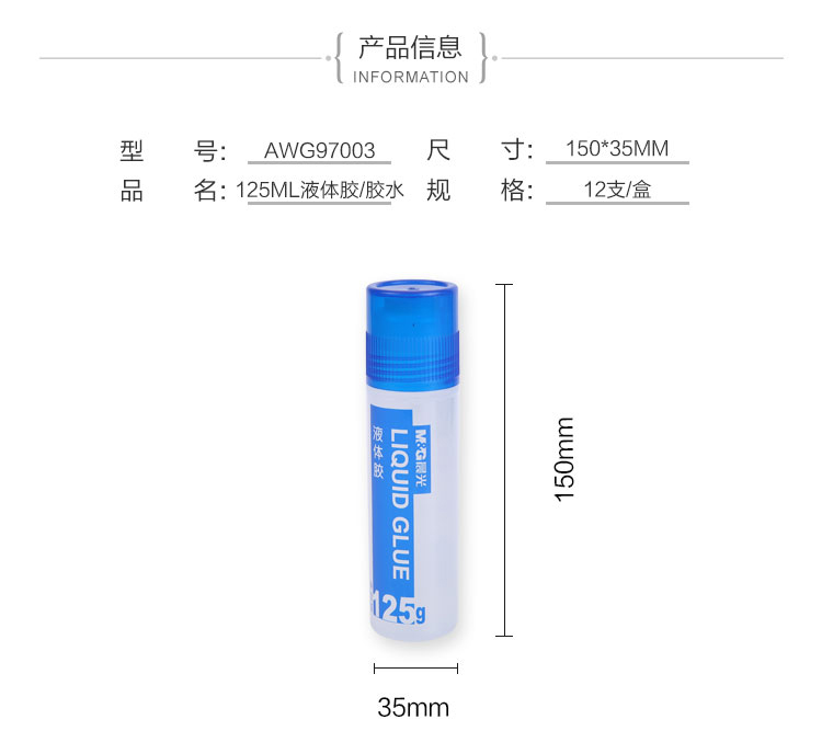 - 商品名称:晨光(M&G)文具125ml高粘度液体胶 办公快干耐用胶水 学生手工黏胶(软胶头涂抹均匀) 12个装AWG97003