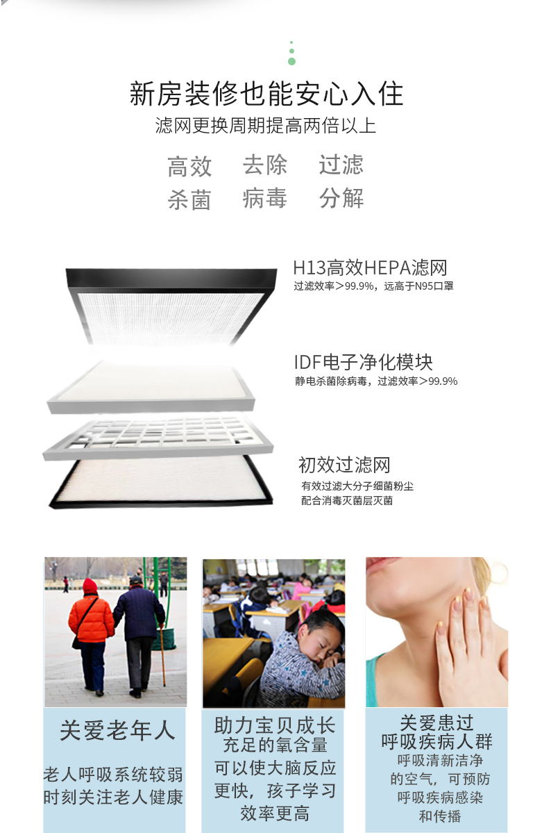 - 过滤污染物类型:甲醛;PM2.5;细菌;病毒