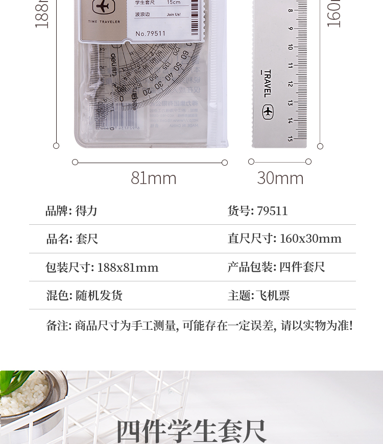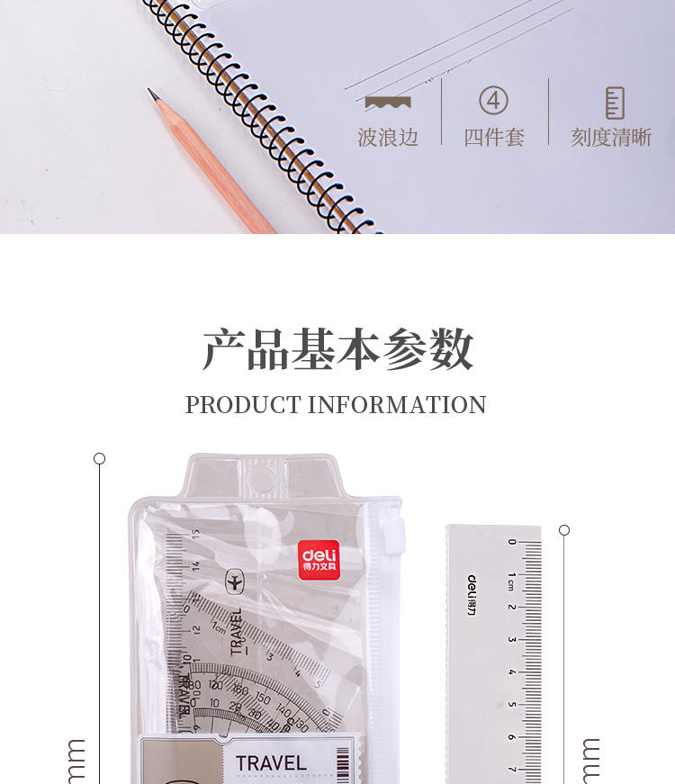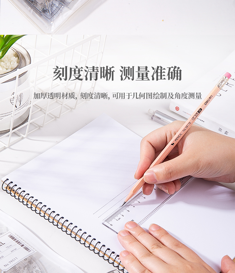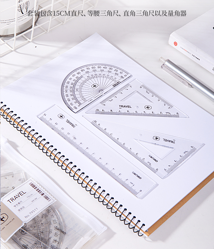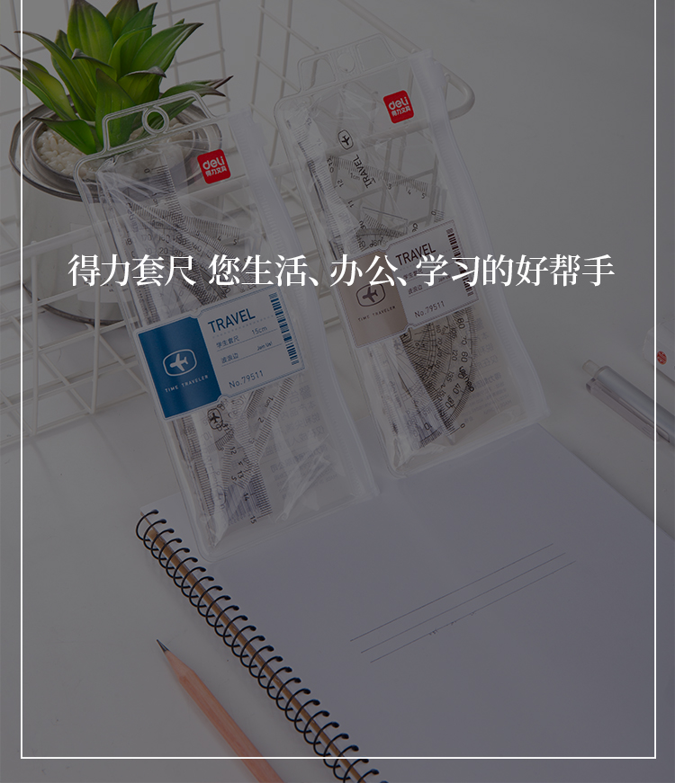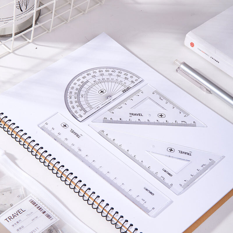 - 商品名称:得力(deli)学生考试绘图套尺(直尺*1+三角尺*2+量角器*1)套装 79511