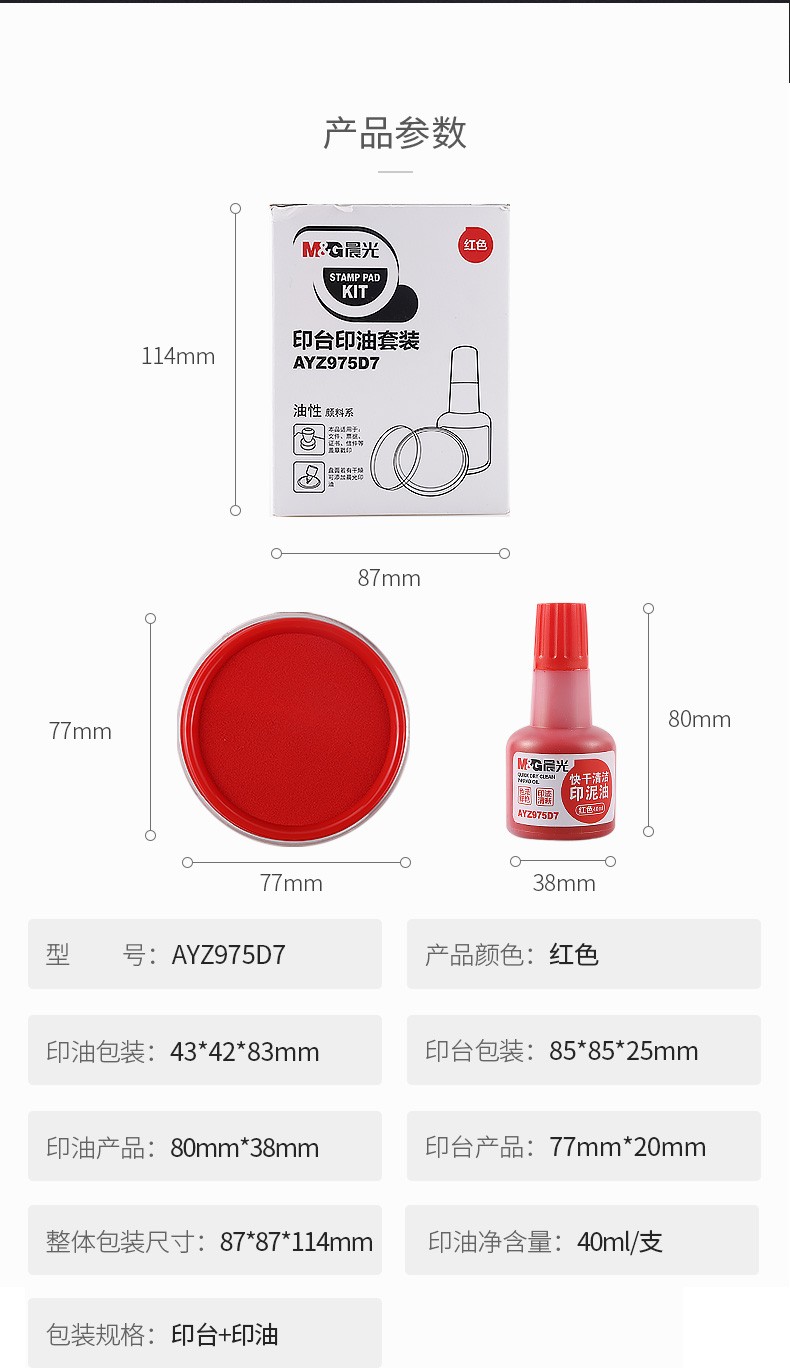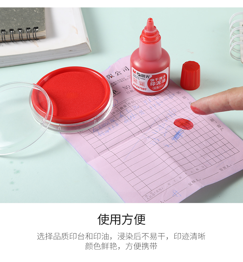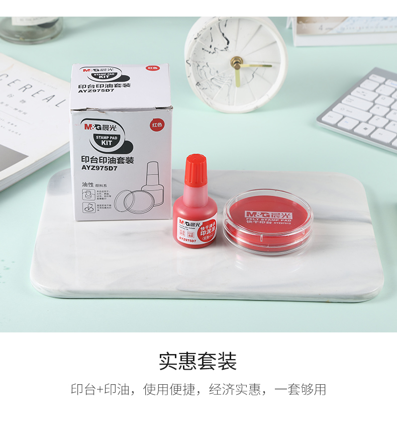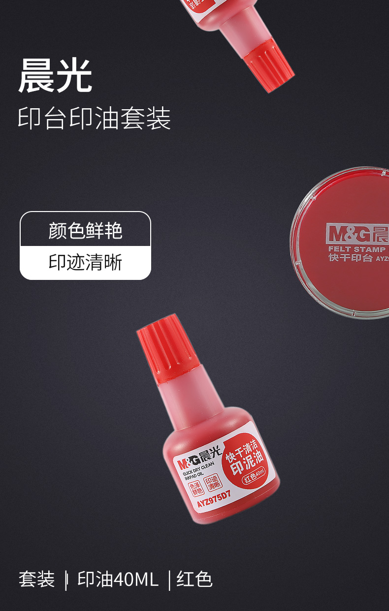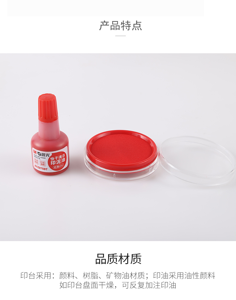 - 商品名称:晨光(M&G) AYZ975D7文具快干印台印油套装 40ml高效快干印油(红)*1+快干印台*1 财务办公专用印台