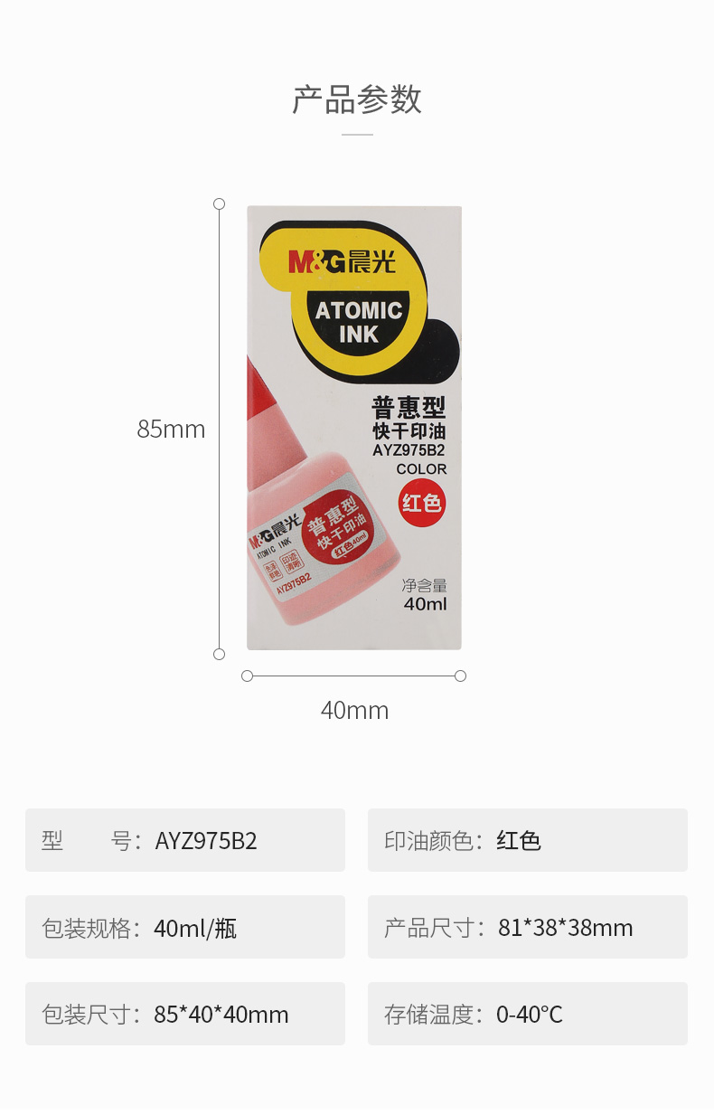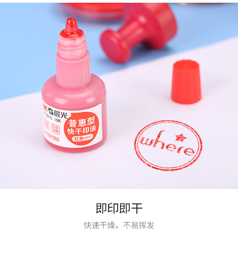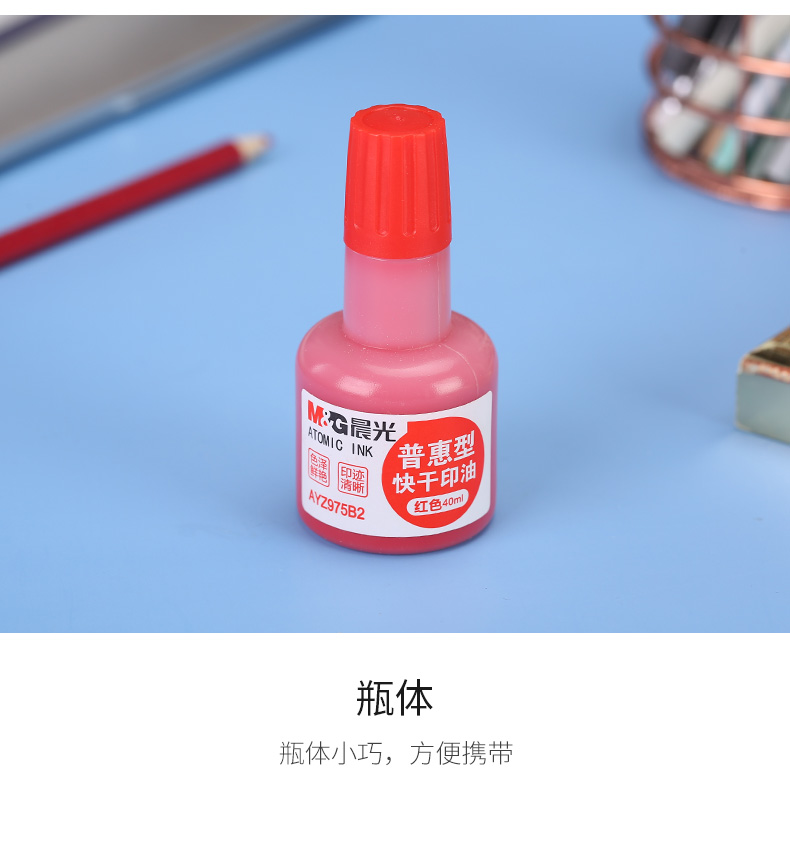 - 商品名称:晨光(M&G)AYZ975B2 文具40ml红色财务快干印油 普惠型办公印章印台专用印油 单瓶装