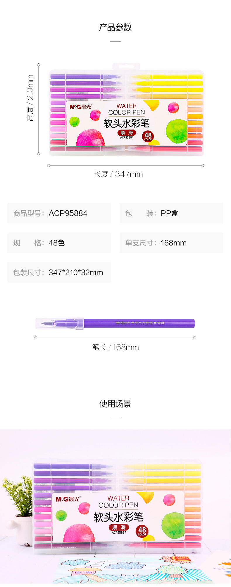 - 商品名称:晨光(M&G)文具48色软头水彩笔 纤维头可水洗绘画彩笔 儿童涂鸦画笔 48支/盒ACP95884