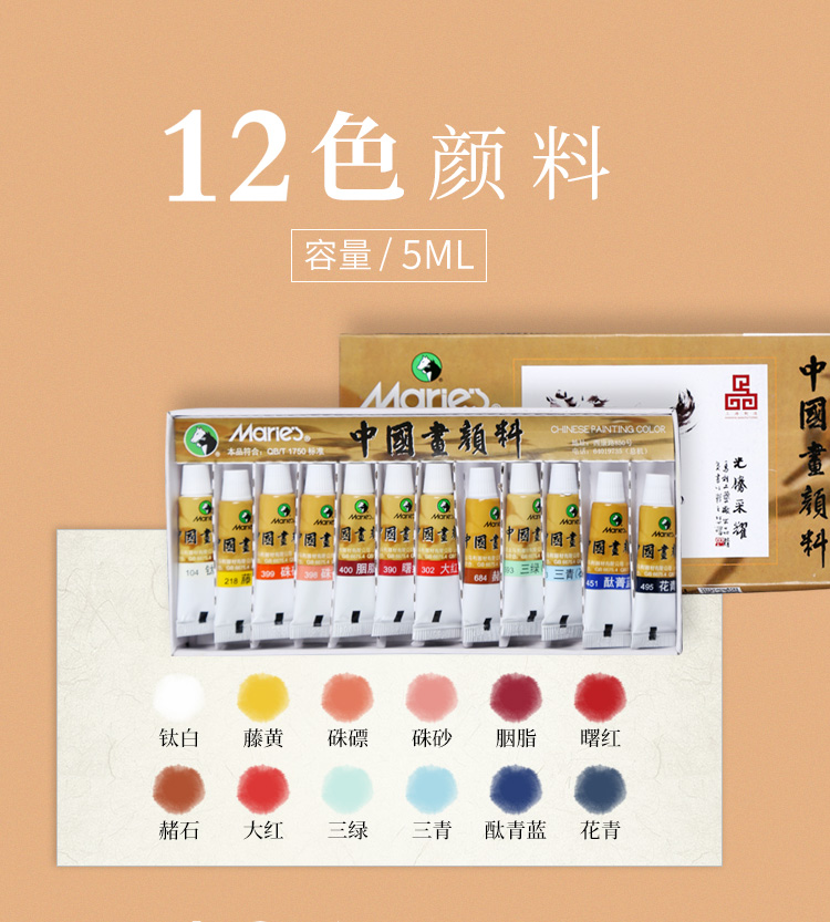 商品名称:马利(Maries)国画颜料 18色/12ml中国画颜料套装 1303