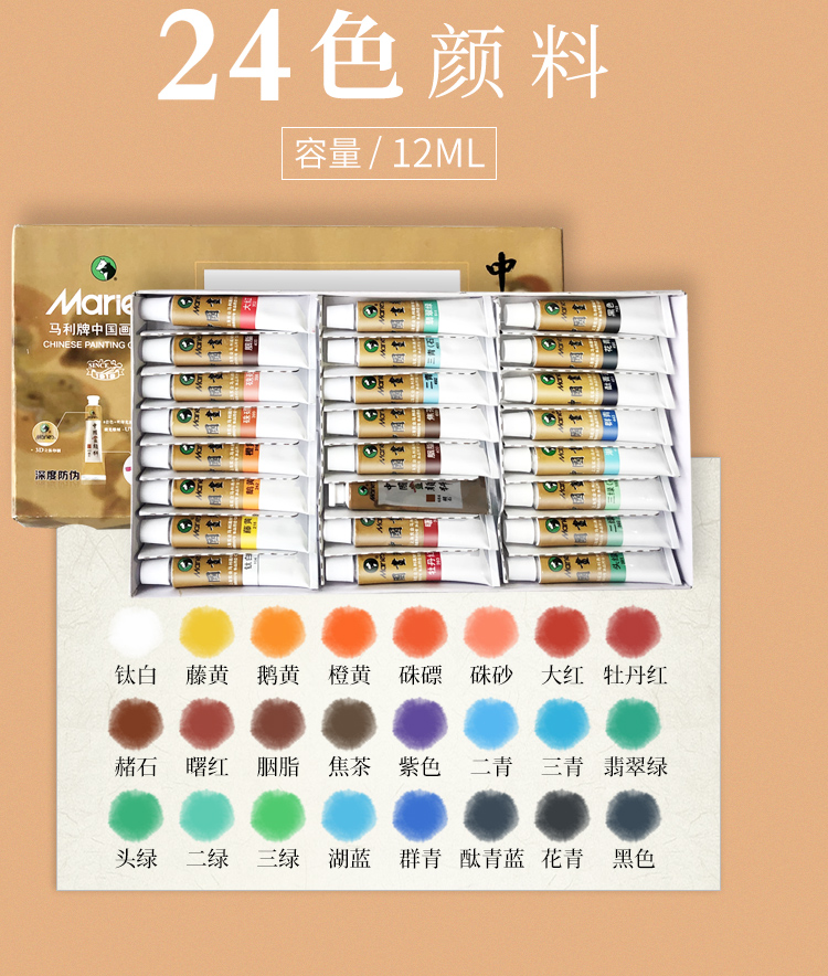 马利(Maries)国画颜料 18色/12ml中国画颜料套装 1303