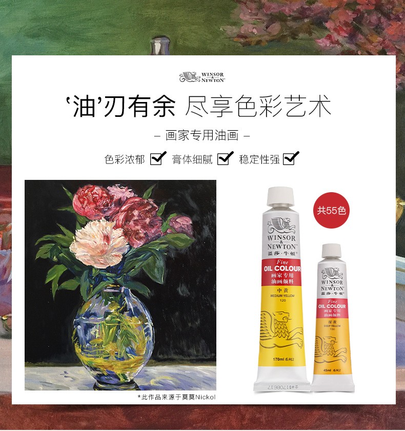 商品名称:温莎牛顿 油画颜料 画家专用油画颜料管支初学者大容量油画油彩颜料套装12/18/24/36色 常用12色 45ml