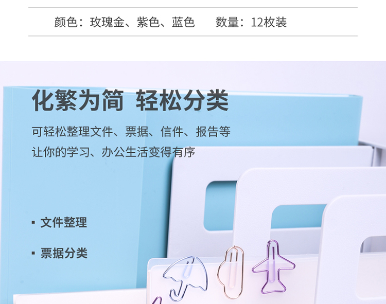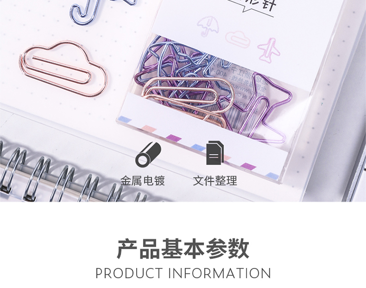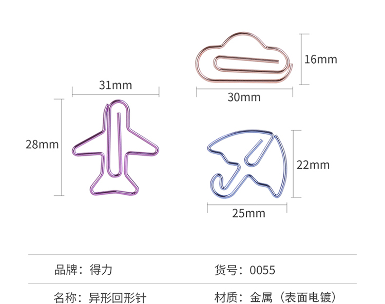 商品名称:得力(deli)12枚装可爱造型电镀办公回形针 0055