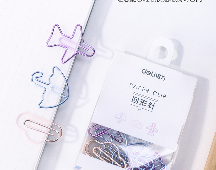 得力(deli)12枚装可爱造型电镀办公回形针 0055