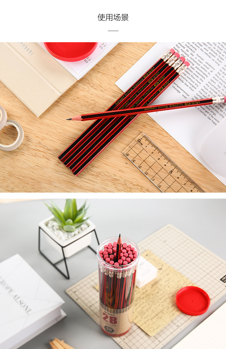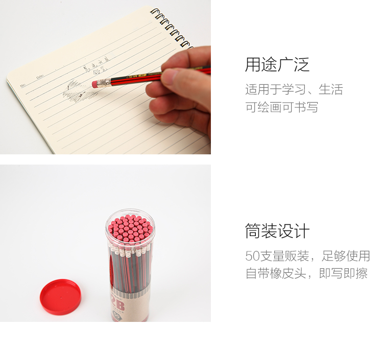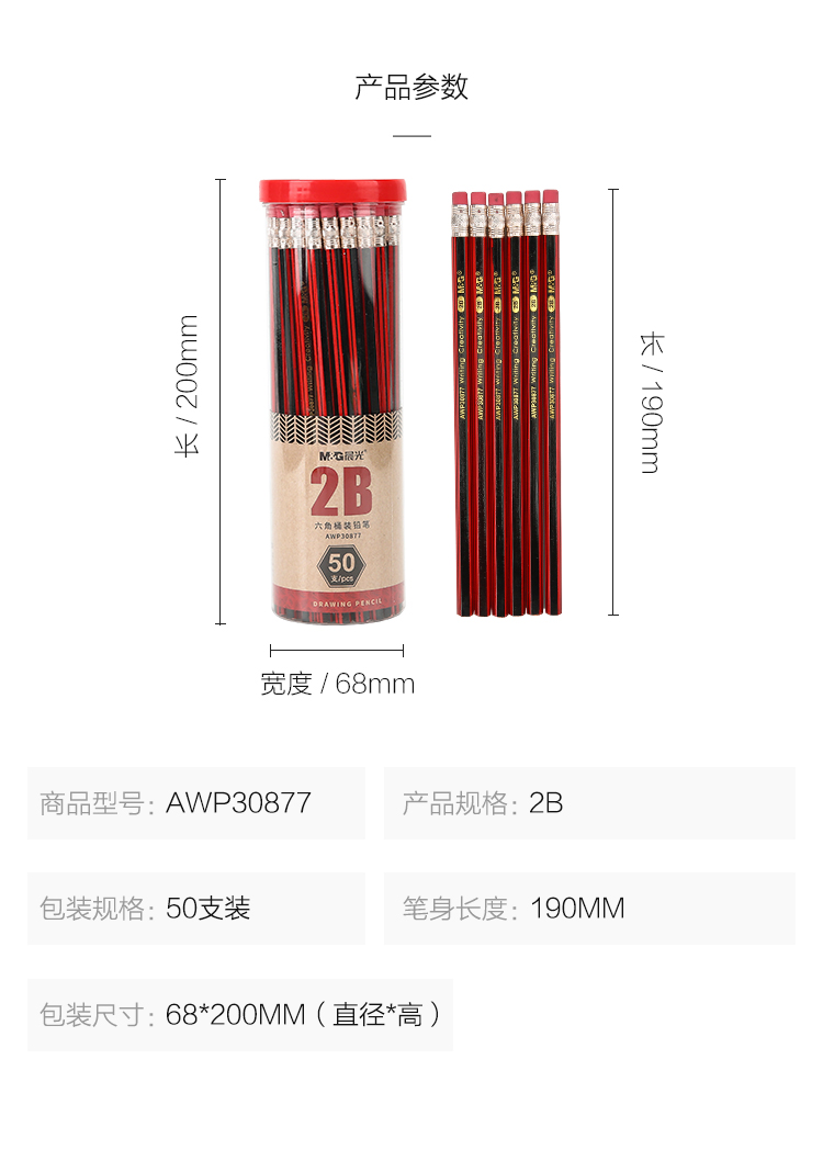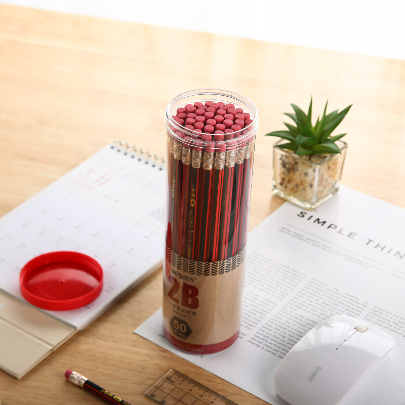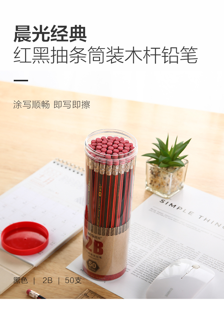 - 商品名称:晨光(M&G)文具经典红黑抽条2B铅笔 学生素描绘图木杆铅笔(带橡皮头) 50支/桶AWP30877