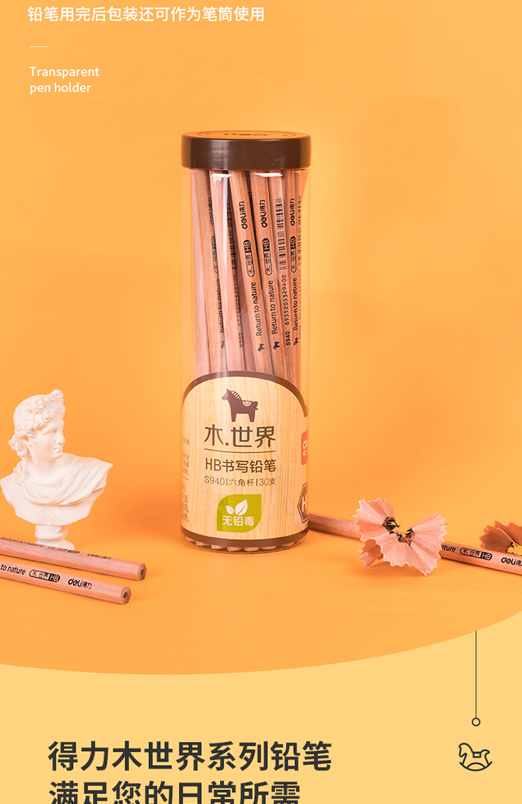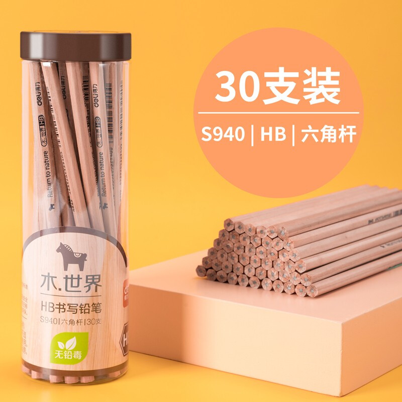 - 商品名称:得力(deli)木世界系列HB六角笔杆书写绘画素描铅笔 30支/桶S940-HB