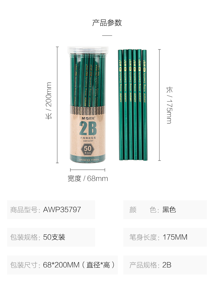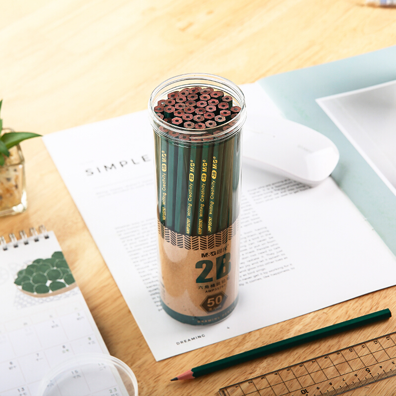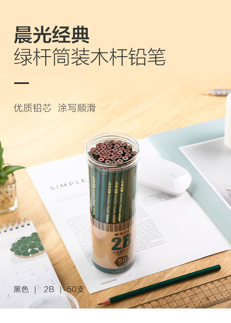 - 商品名称:晨光(M&G)文具经典绿杆2B铅笔 学生考试木杆铅笔 绘图书写铅笔 50支/桶AWP35797