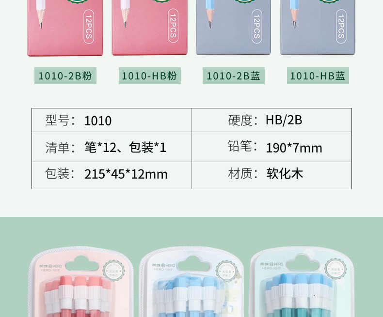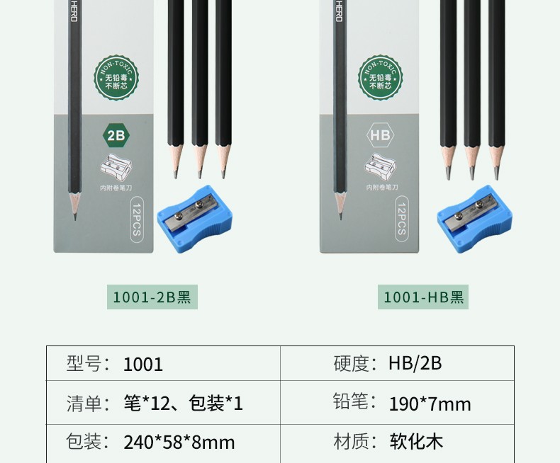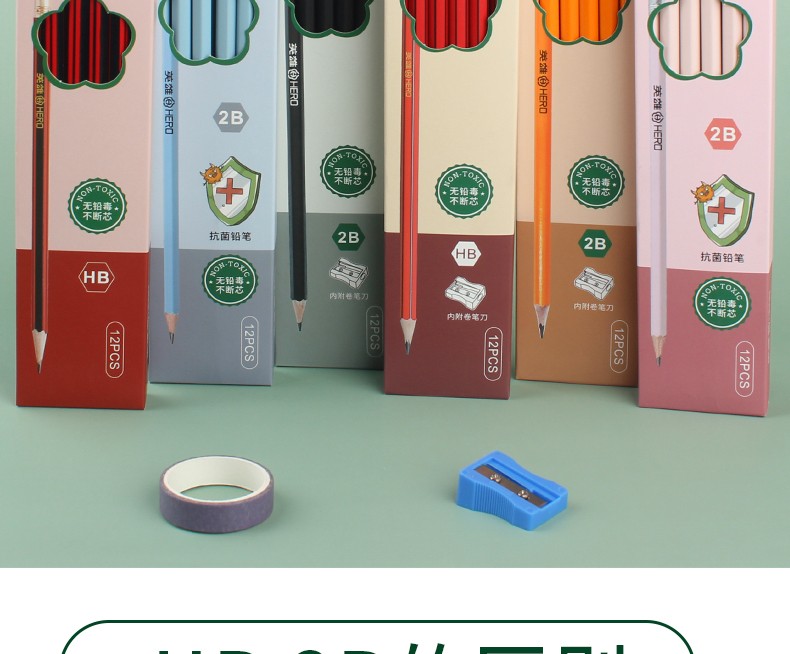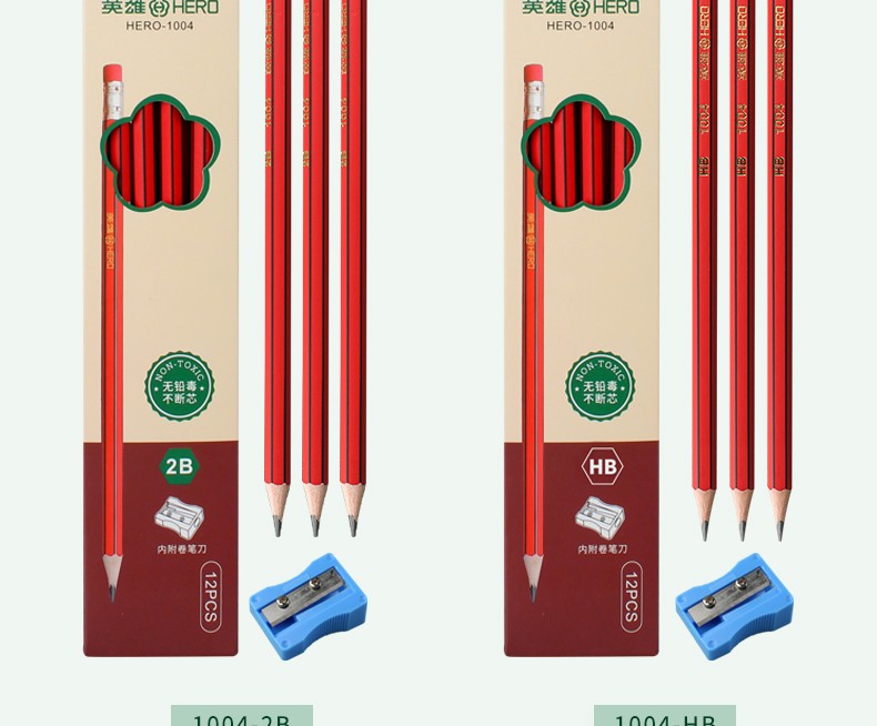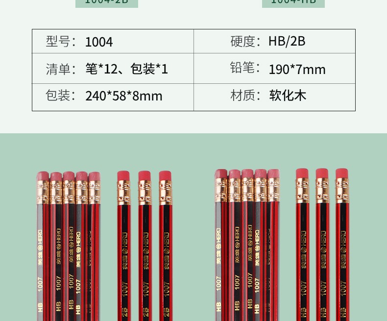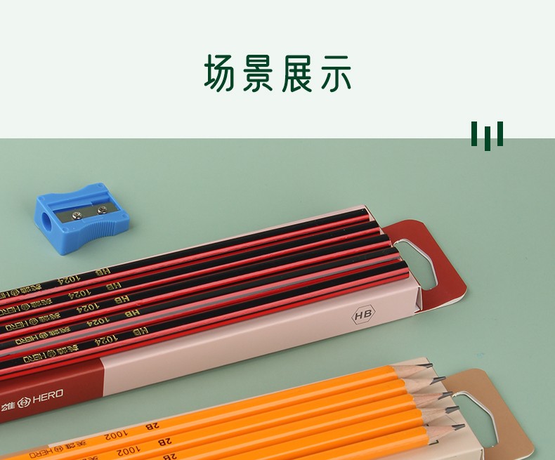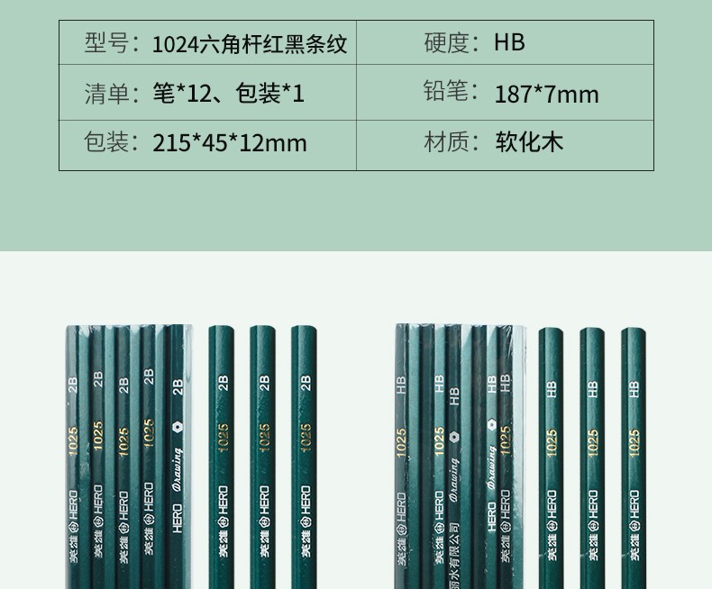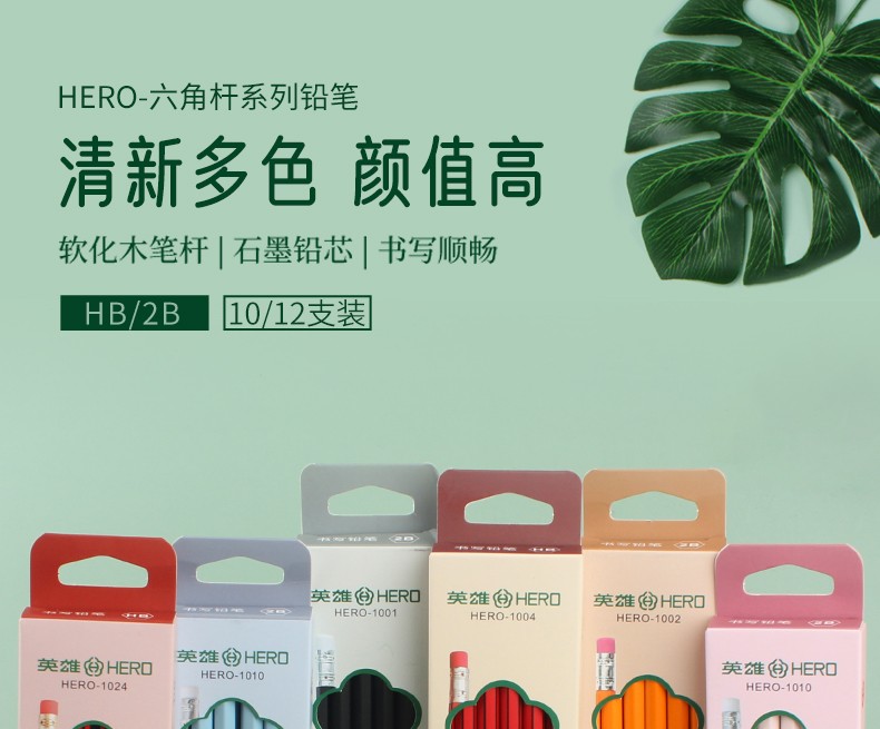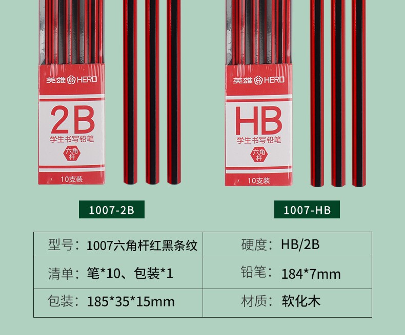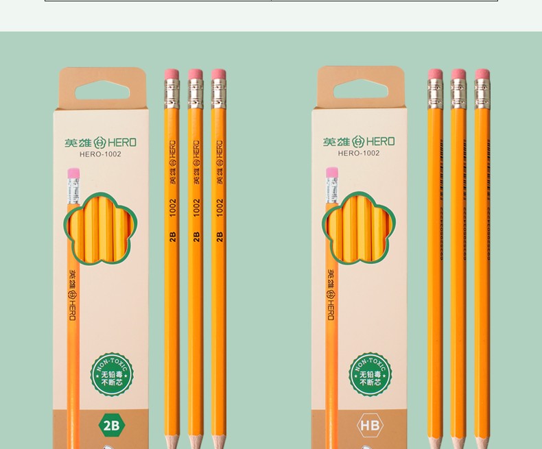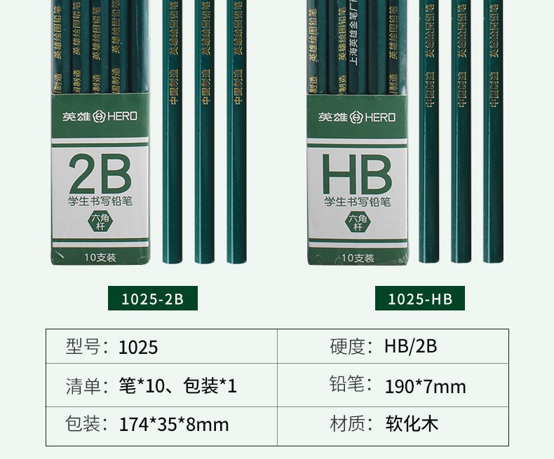 - 商品名称:英雄(HERO)铅笔木质六角杆经典2B/HB铅笔小学生书写练字绘画笔 1025-经典红木10支 2B