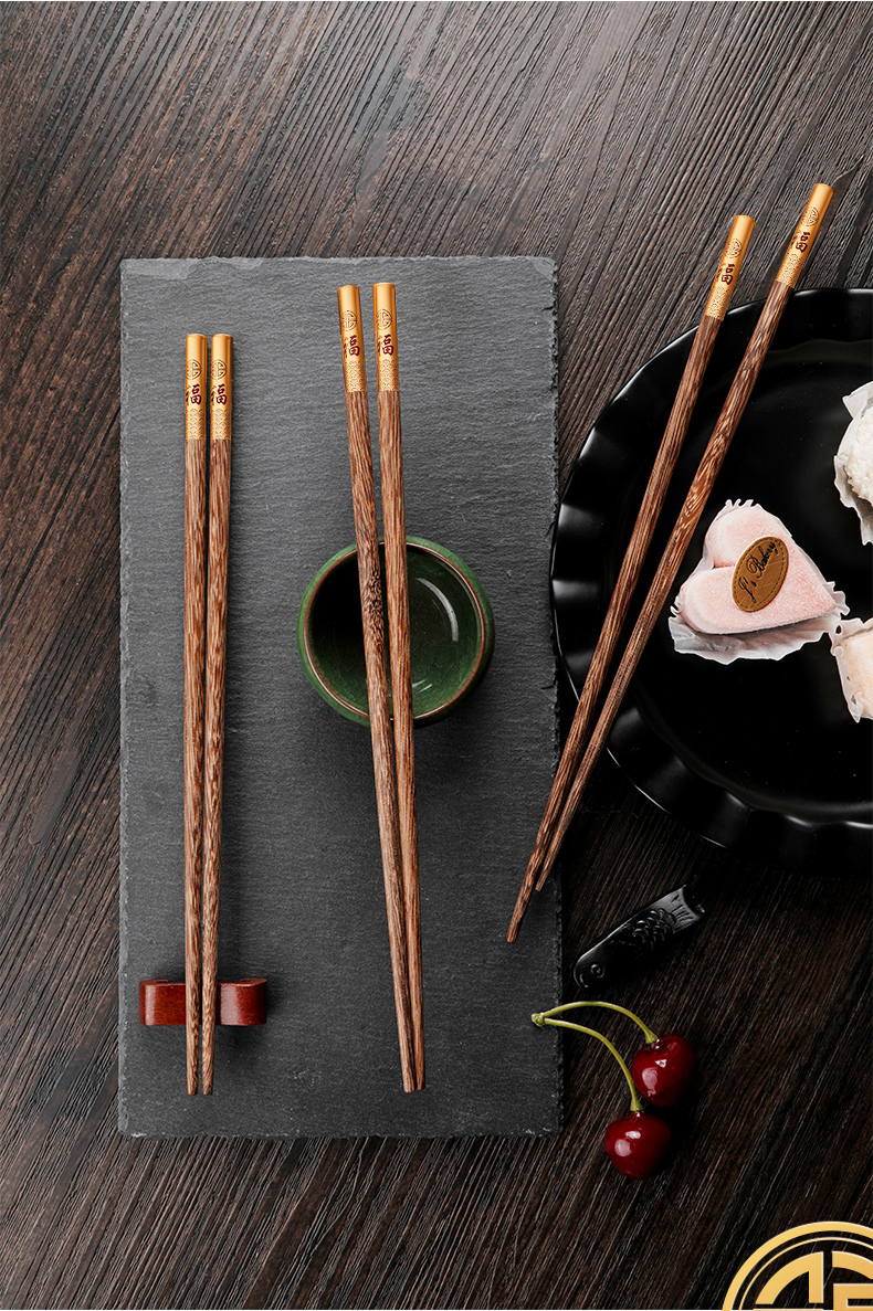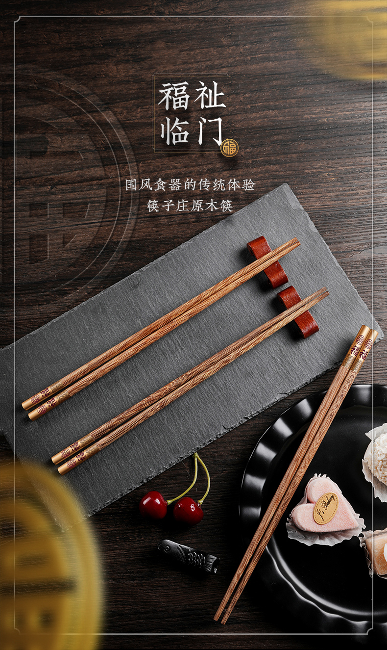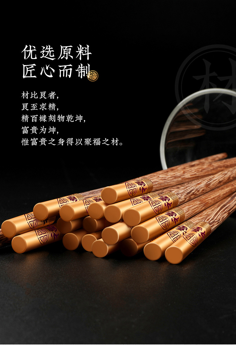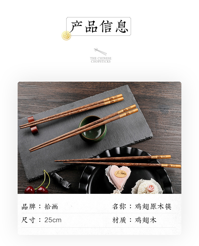 - 商品名称:拾画 鸡翅木筷子实用高档家庭酒店筷子10双装 五福临门金底红字款 25cm SH-6281