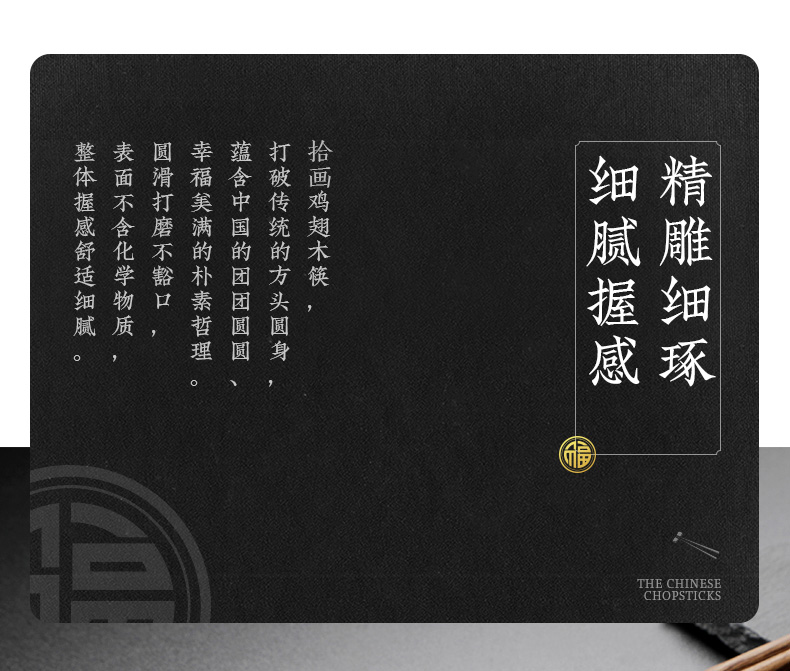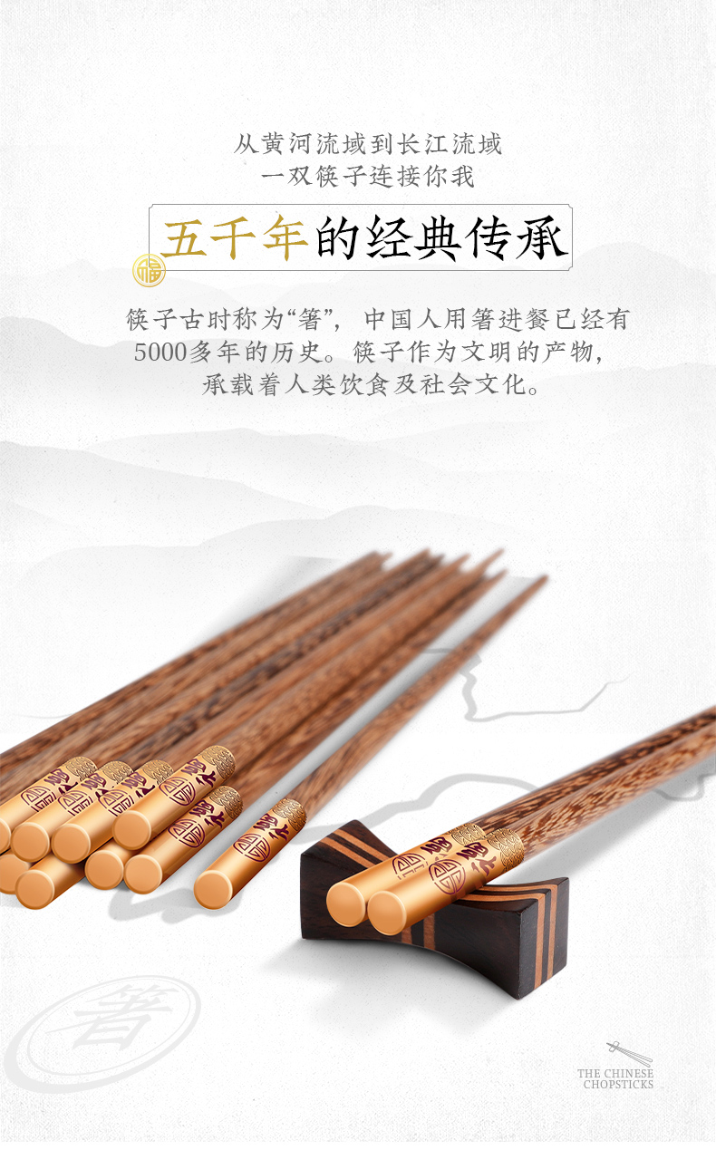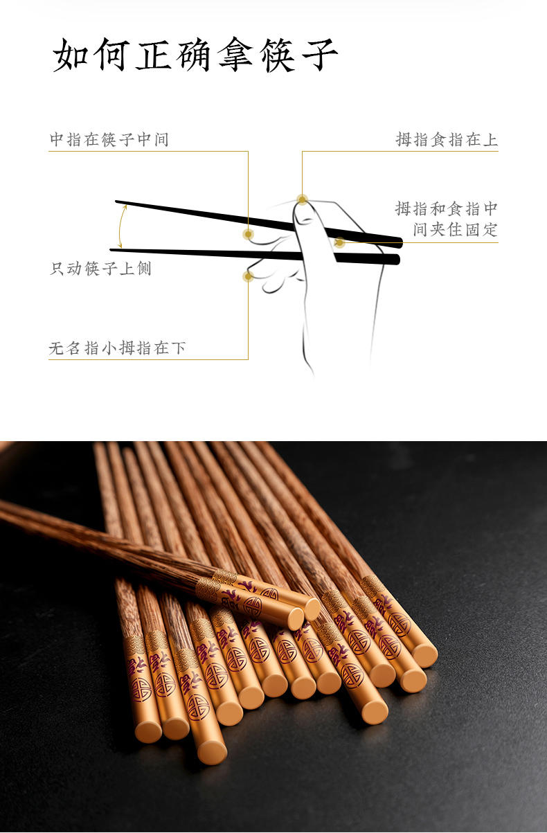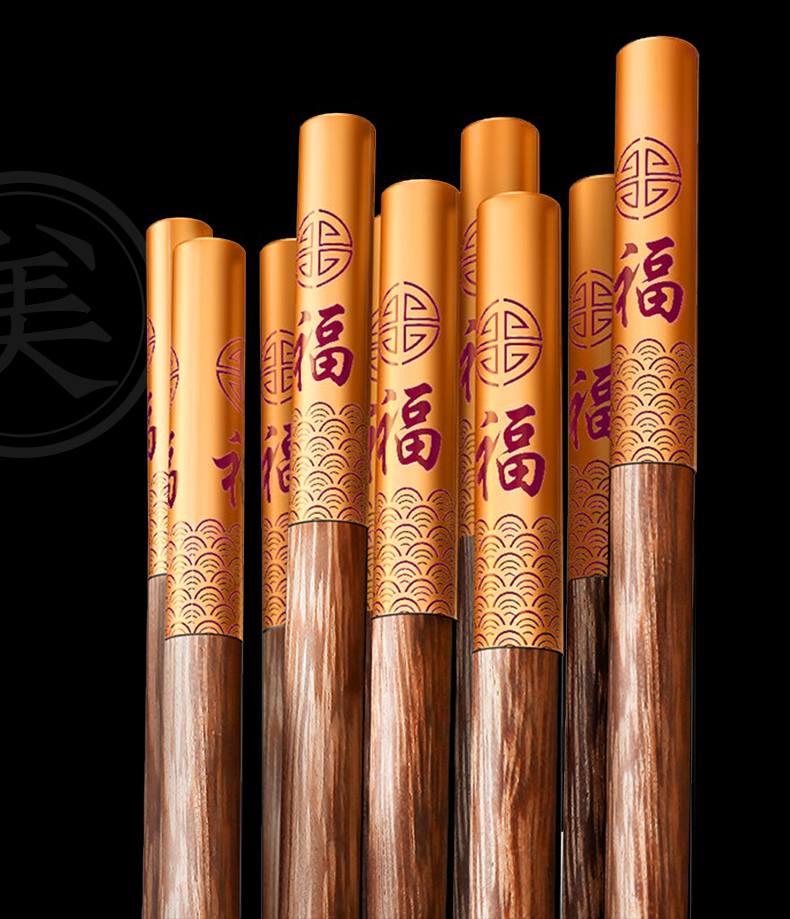 - 商品名称:拾画 鸡翅木筷子实用高档家庭酒店筷子10双装 五福临门金底红字款 25cm SH-6281