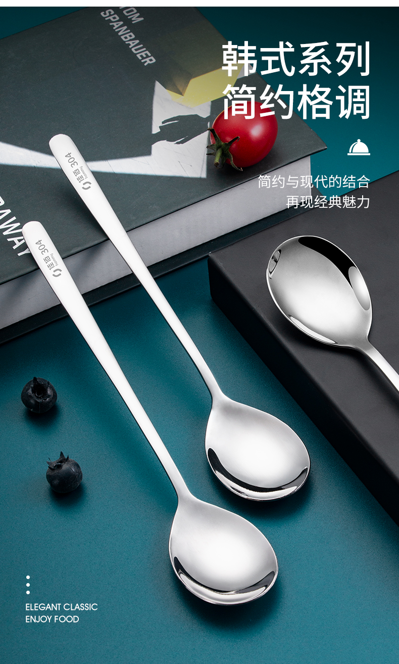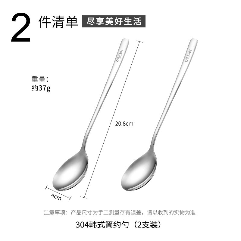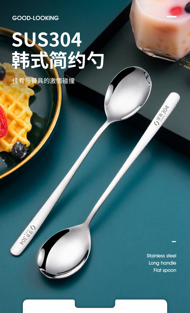 - 商品名称:佳佰 304不锈钢勺子套装 韩式主餐勺咖啡勺搅拌勺 简约长柄勺2支装 JB-0470