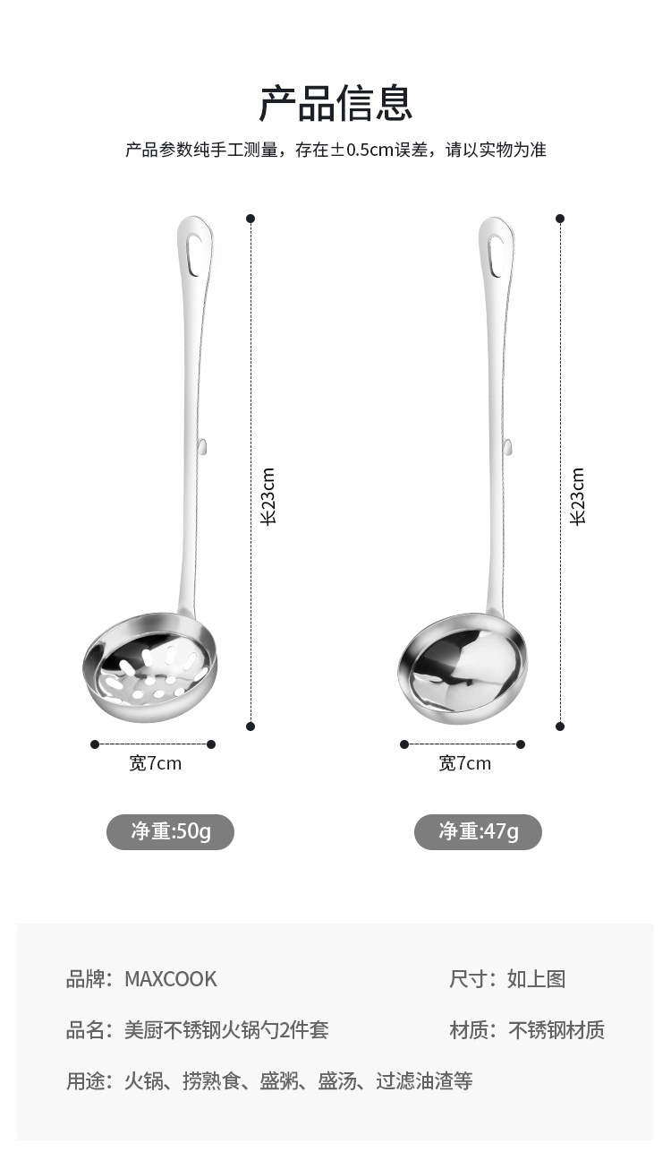 - 商品名称:美厨(maxcook)火锅勺 不锈钢汤勺漏勺两件套 特惠系列 MCTH-22