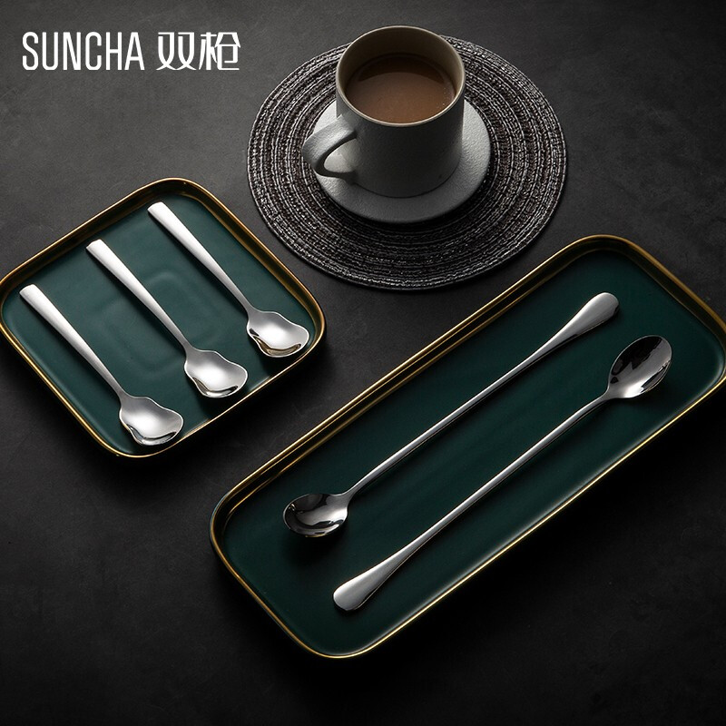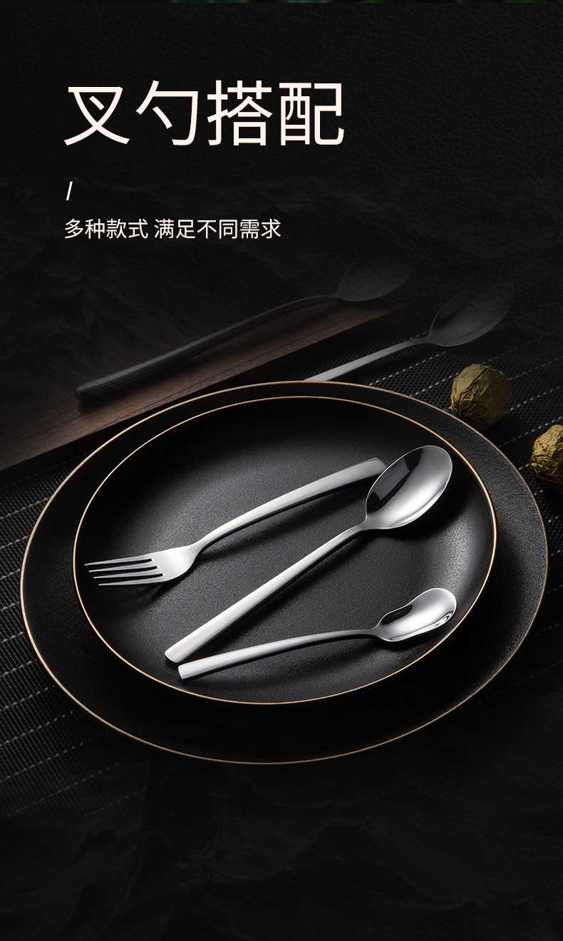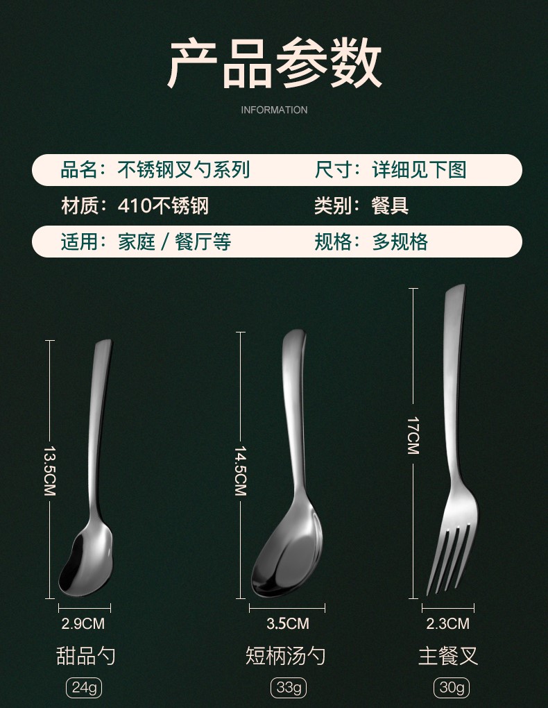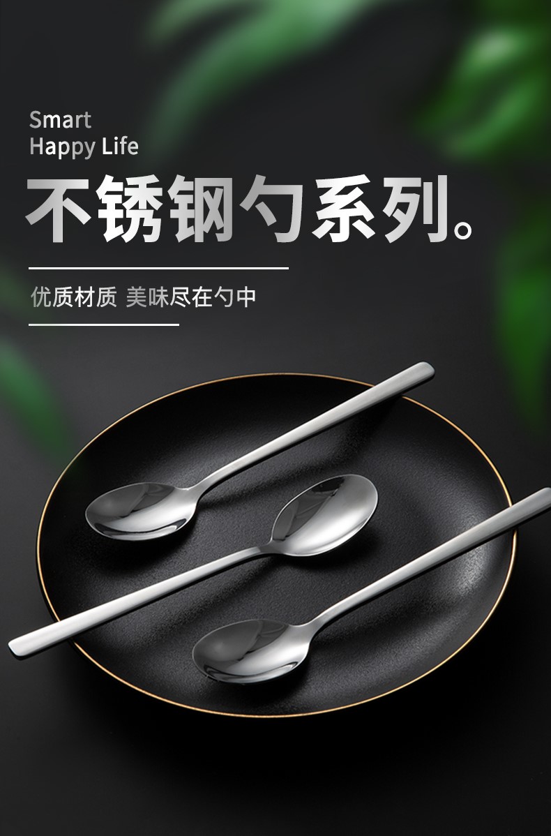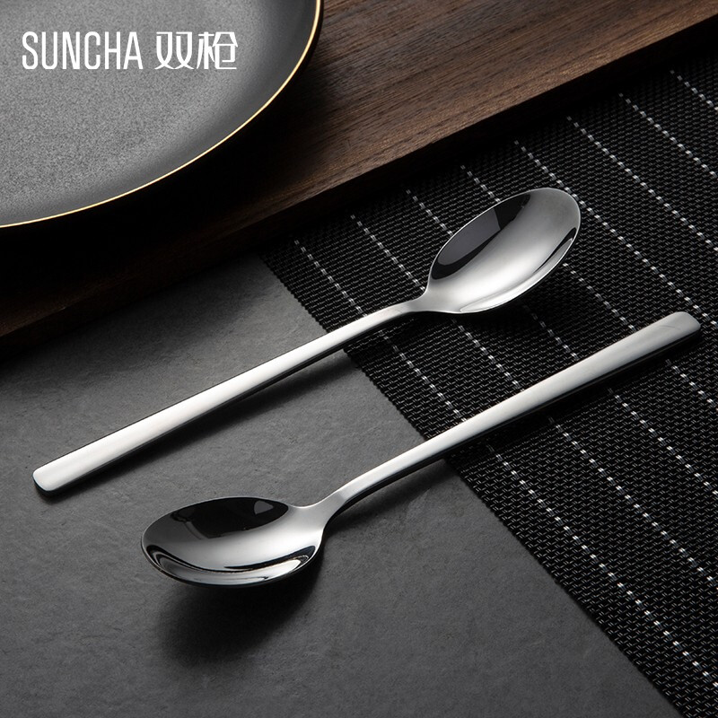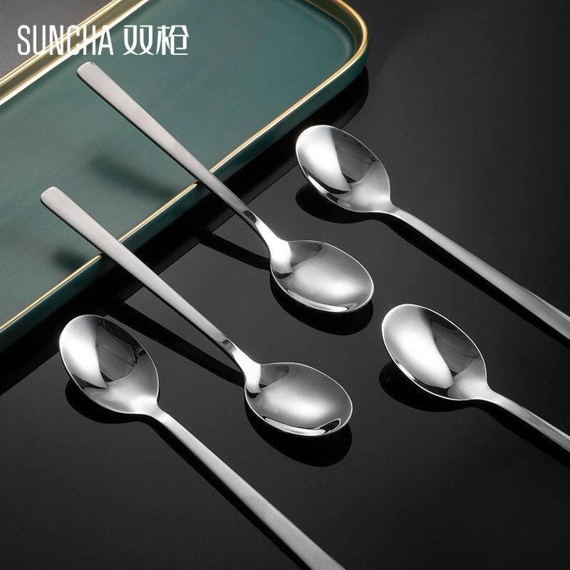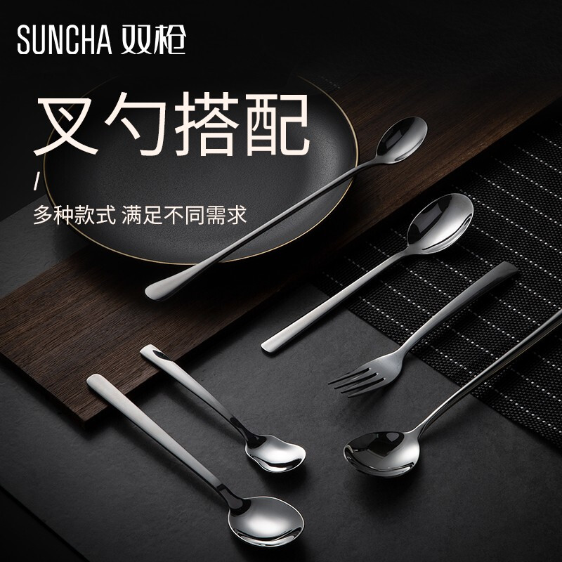 - 商品名称:双枪不锈钢勺子 叉子西餐餐具套装家用甜品勺汤勺长柄搅拌勺咖啡勺汤匙调羹饭勺创意西餐叉主餐勺 主餐勺【五只装】