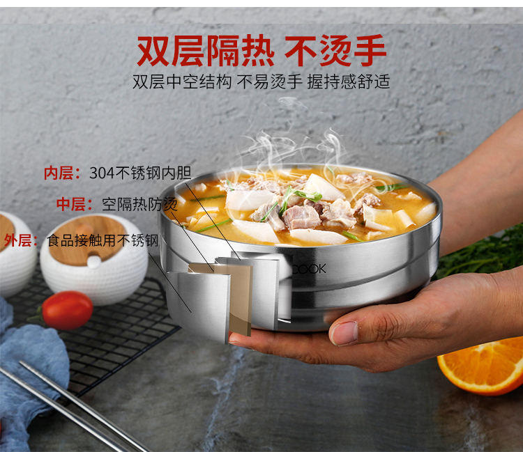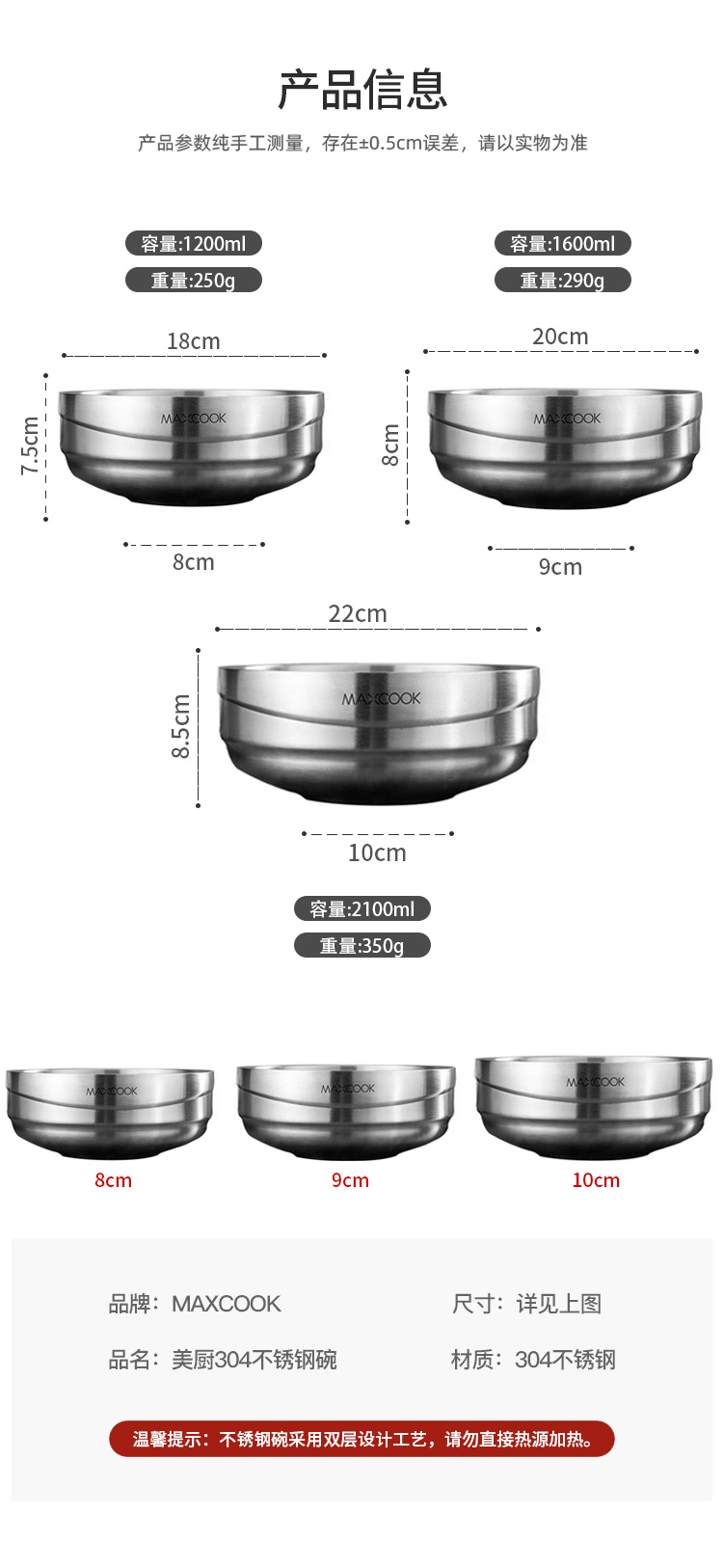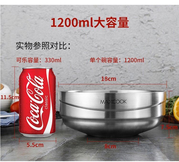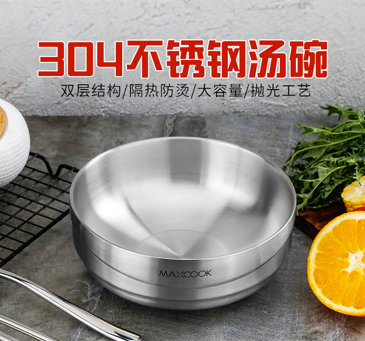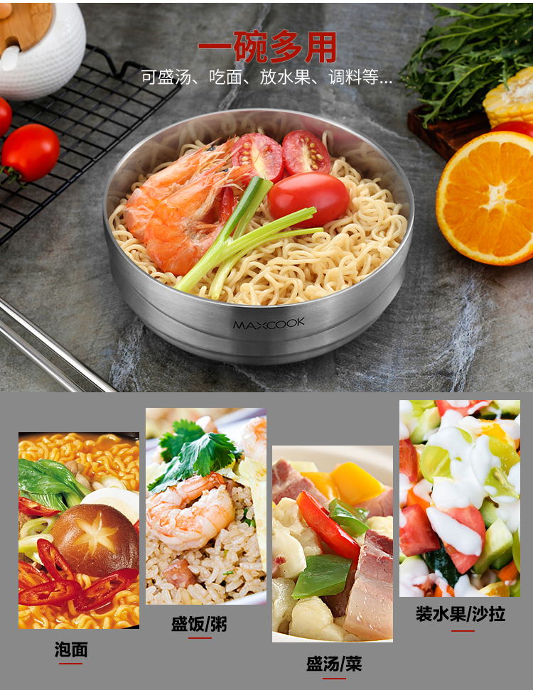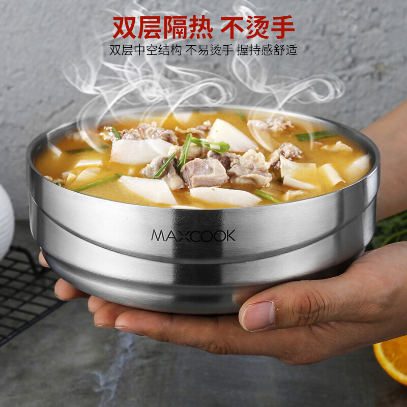 - 商品名称:美厨(maxcook)304不锈钢碗 大汤碗双层隔热 餐具面碗18CM MCWA613